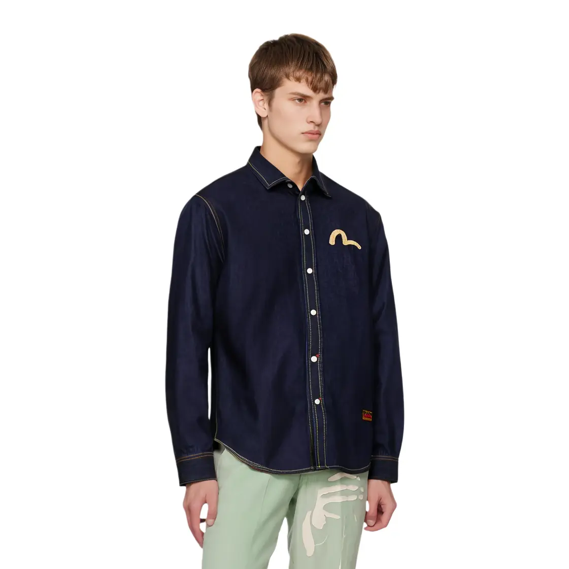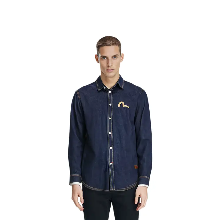 Рубашка мужская джинсовая синяя Evisu, синий