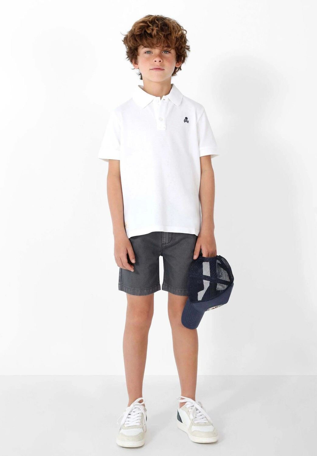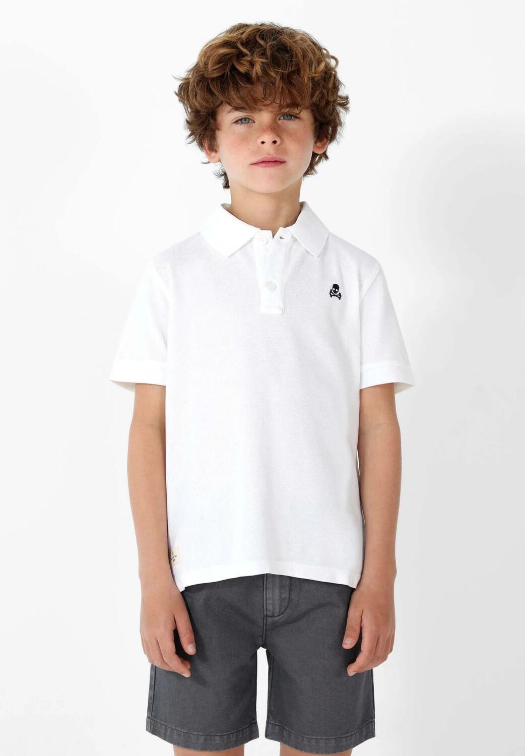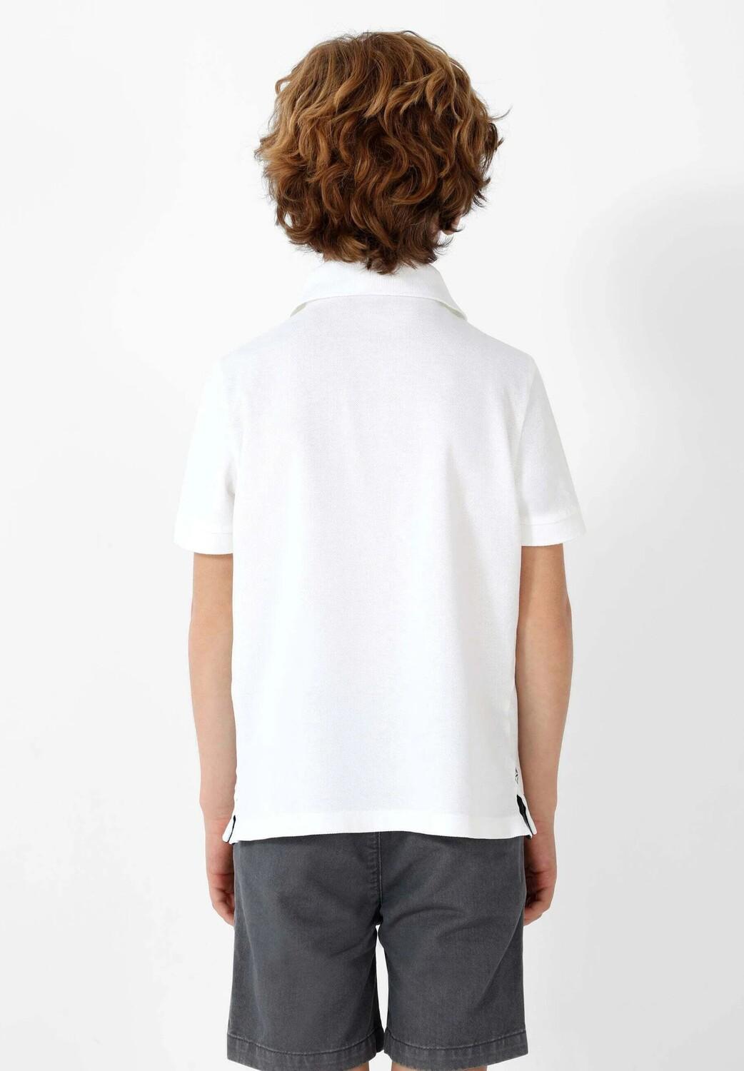 Футболка поло из однотонного хлопкового пике. Особенности: ребристый воротник, пуговичная планка, короткие рукава, фирменный логотип на груди.