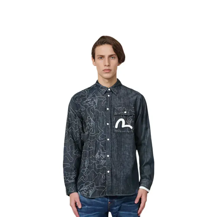 Рубашка мужская джинсовая синяя Evisu, синий 25 995₽
