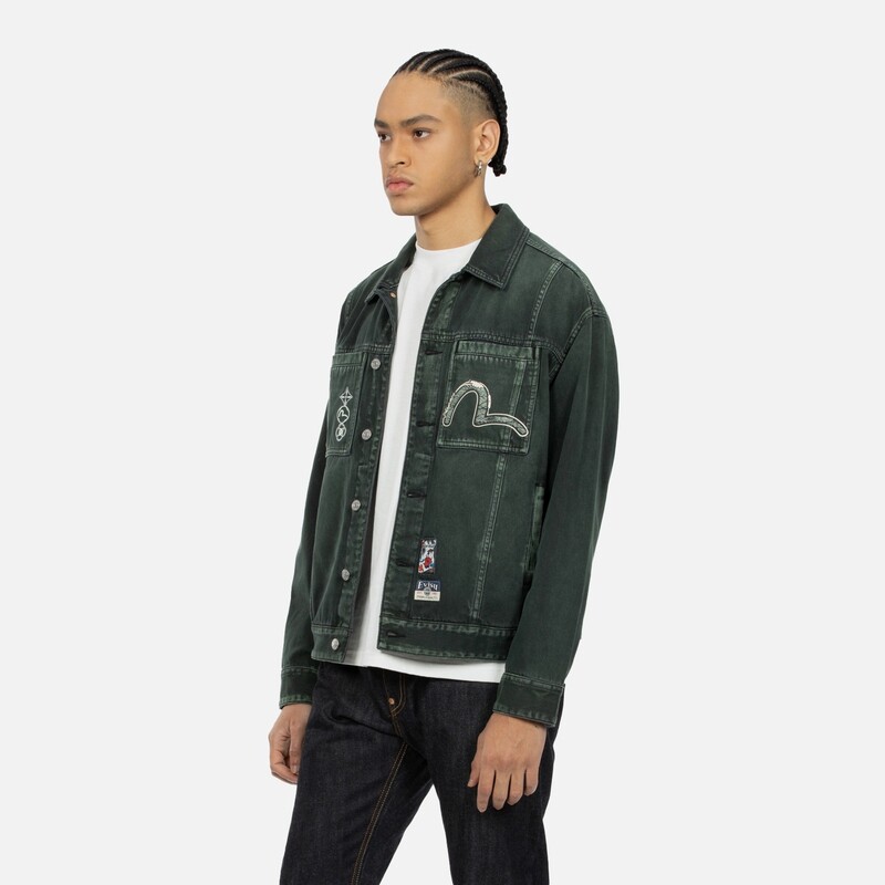 Джинсовая куртка мужская джинсовая зеленая Evisu, зеленый