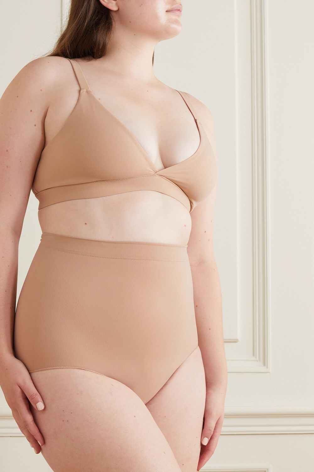 Видение Ким Кардашьян для SKIMS заключалось в том, чтобы создать суперудобную форму и одежду в более широком диапазоне оттенков, чем то, что ей удавалось найти ранее. Этот треугольный бюстгальтер без косточек из коллекции «Подходит всем» выполнен из двухслойной эластичной ткани, которая не будет врезаться в кожу. Он оснащен инновационной сеткой Power Mesh для дополнительной поддержки и имеет полностью регулируемые плечевые ремни.