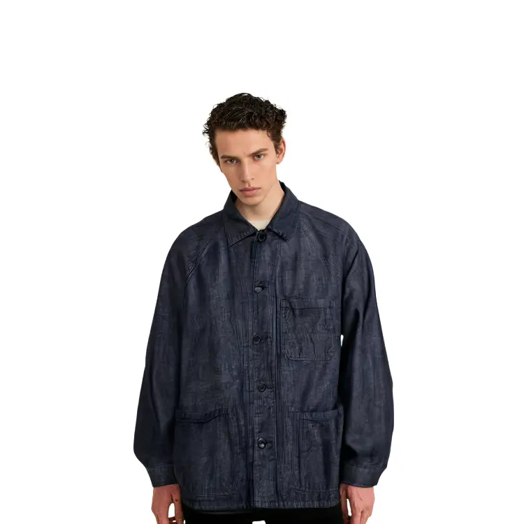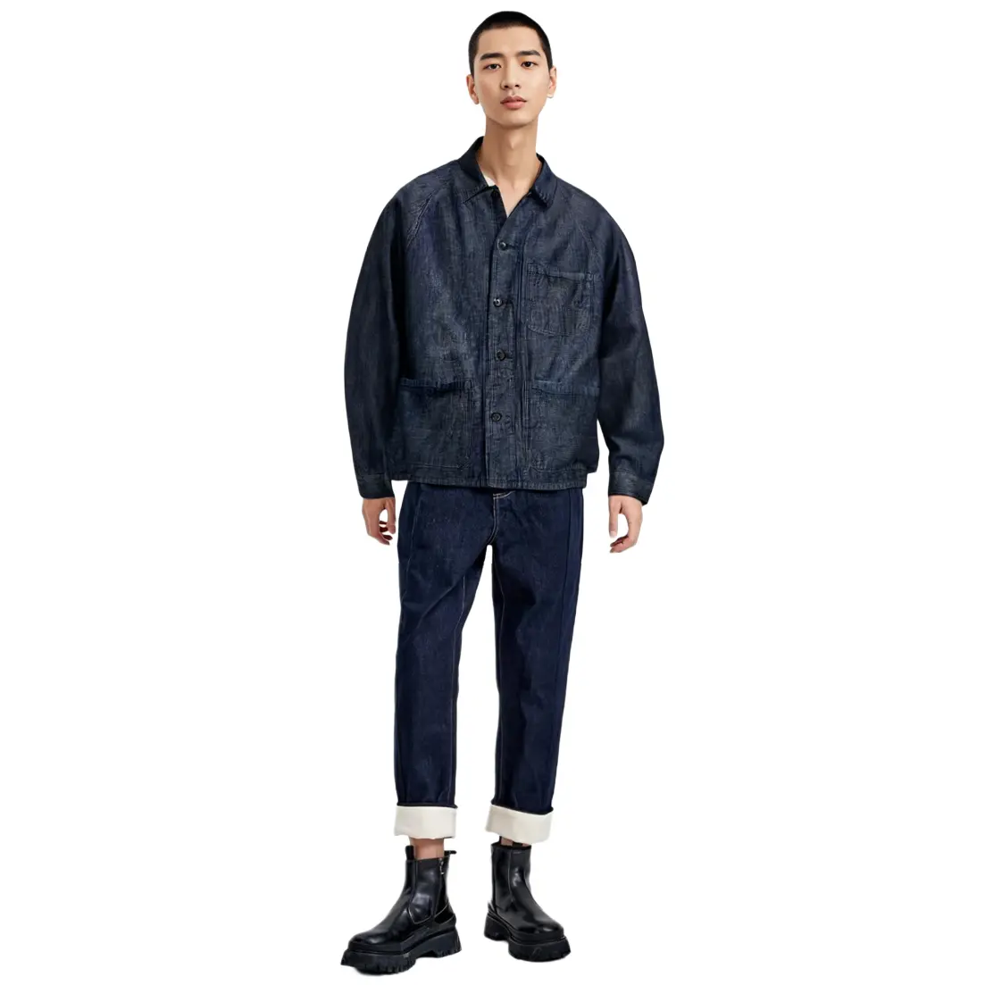 Ткань из смесового льна для прохладной и удобной посадки. Джинсовая ткань смешана с льном для дополнительного комфорта. Дизайн больших карманов, вдохновленный винтажной рабочей одеждой. Тонкая двойная строчка для легкого современного вида. Унисекс дизайн со свободным силуэтом.