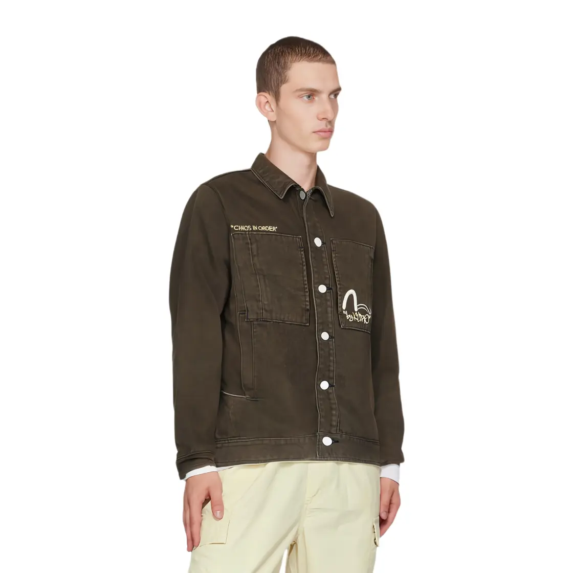 Джинсовая куртка мужская темно-угольная Evisu, цвет Dark Charcoal
