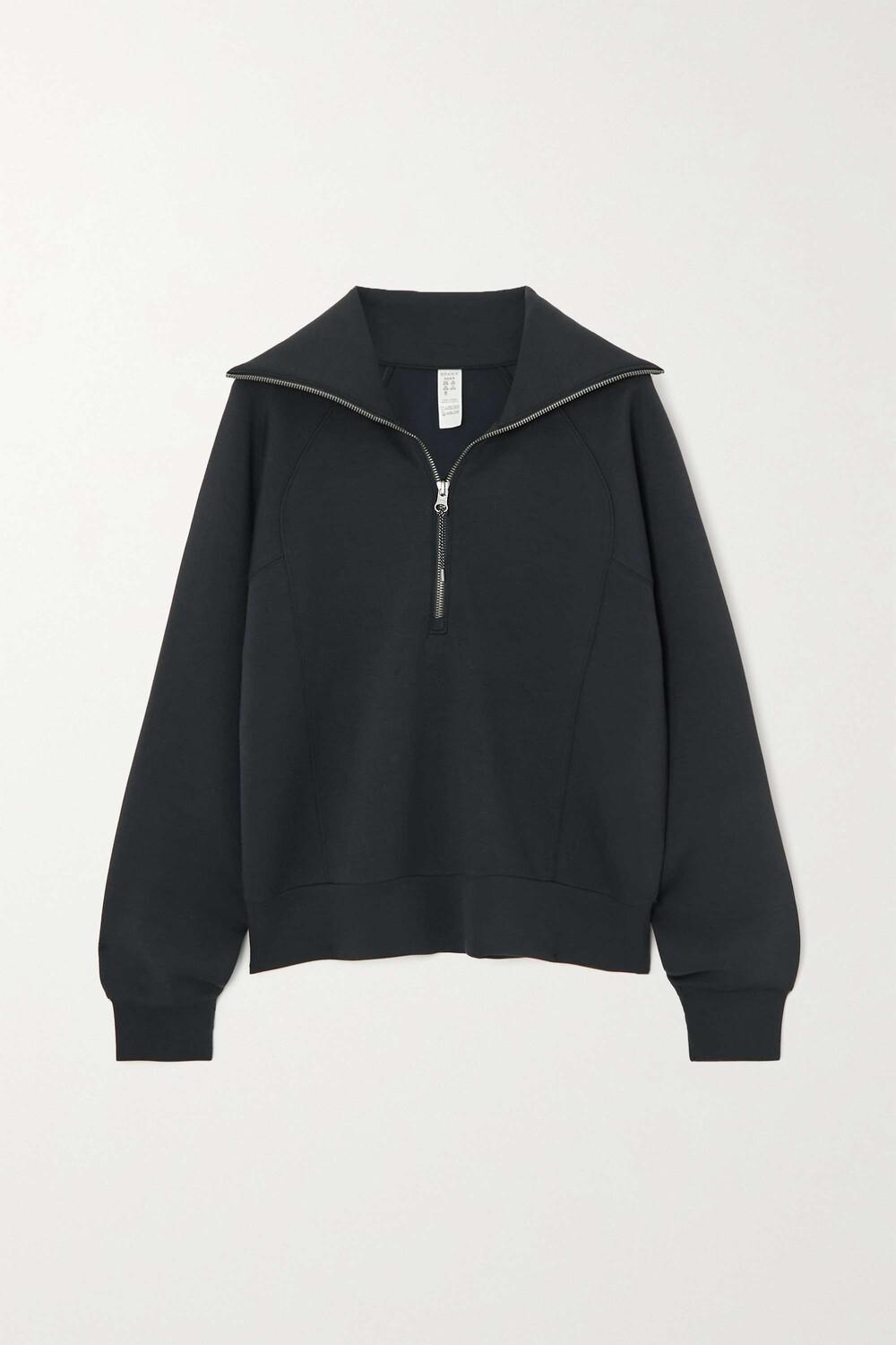 Толстовка Spanx «AirEssentials» изготовлена ​​из мягкого эластичного трикотажа, который, по словам лейбла, «легкий, как воздух». Он имеет вырез на половинной молнии и слегка свободный крой, что позволяет легко надевать его одновременно. Носите свои с подходящими леггинсами во время выполнения поручений.