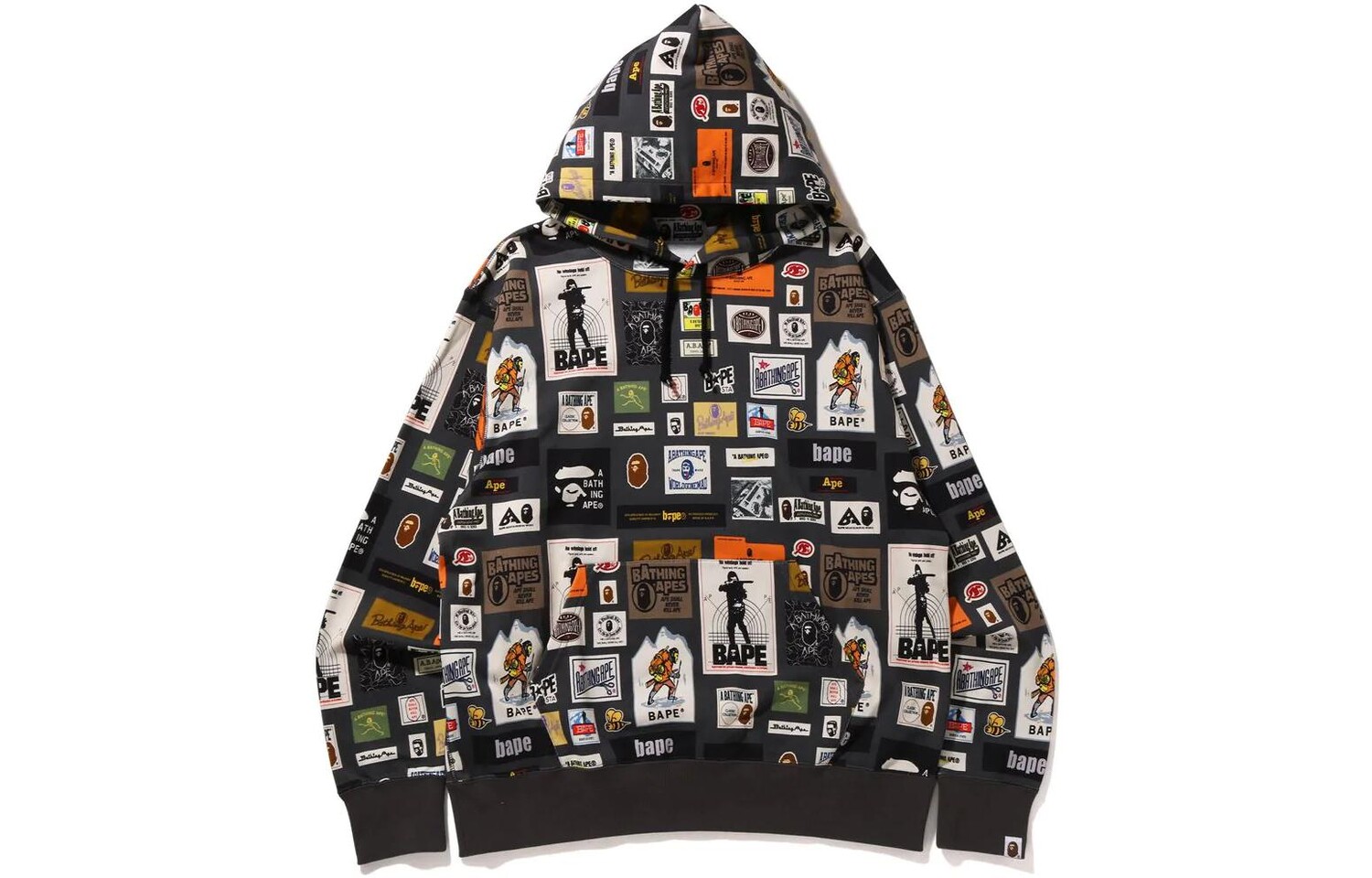BAPE Multi Label Свободный крой пуловер с капюшоном A Bathing Ape, коричневый