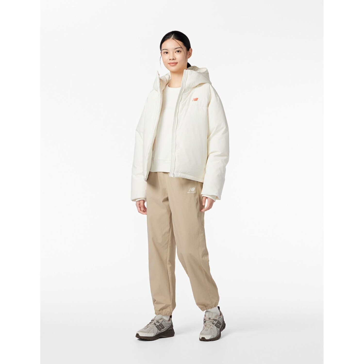 Пуховик унисекс Off White New Balance, кремовый