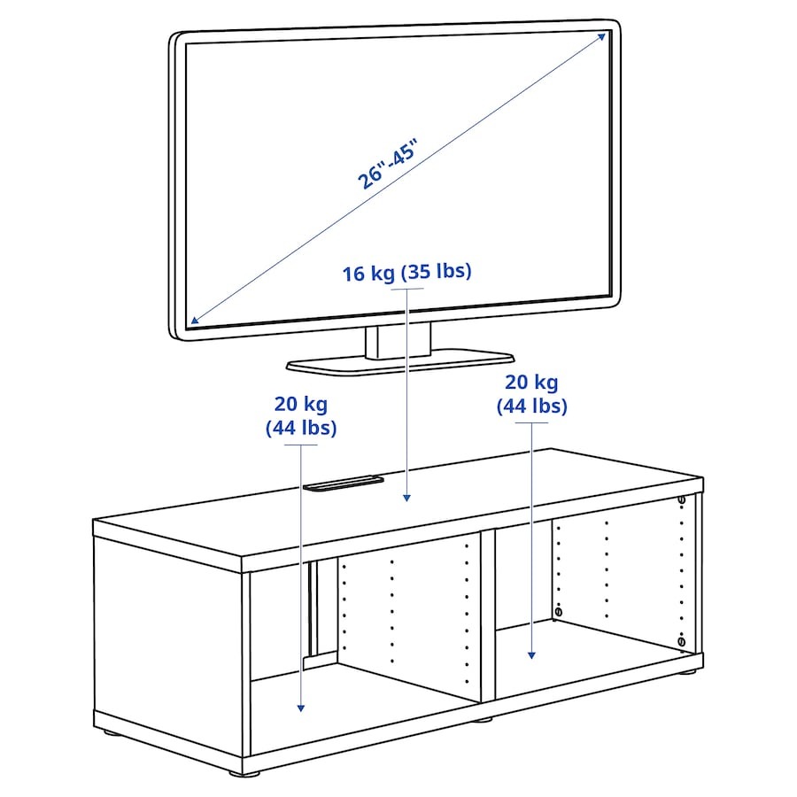 Поставьте тумбу БЕСТО на пол или закрепите на стене. Добавьте сегменты, оснастите их полочками, ящиками или дверцами. Возможности безграничны. Благодаря нескольким отверстиям на задней панели тумбы под ТВ провода от телевизора и других устройств всегда будут под рукой, но не на виду.
