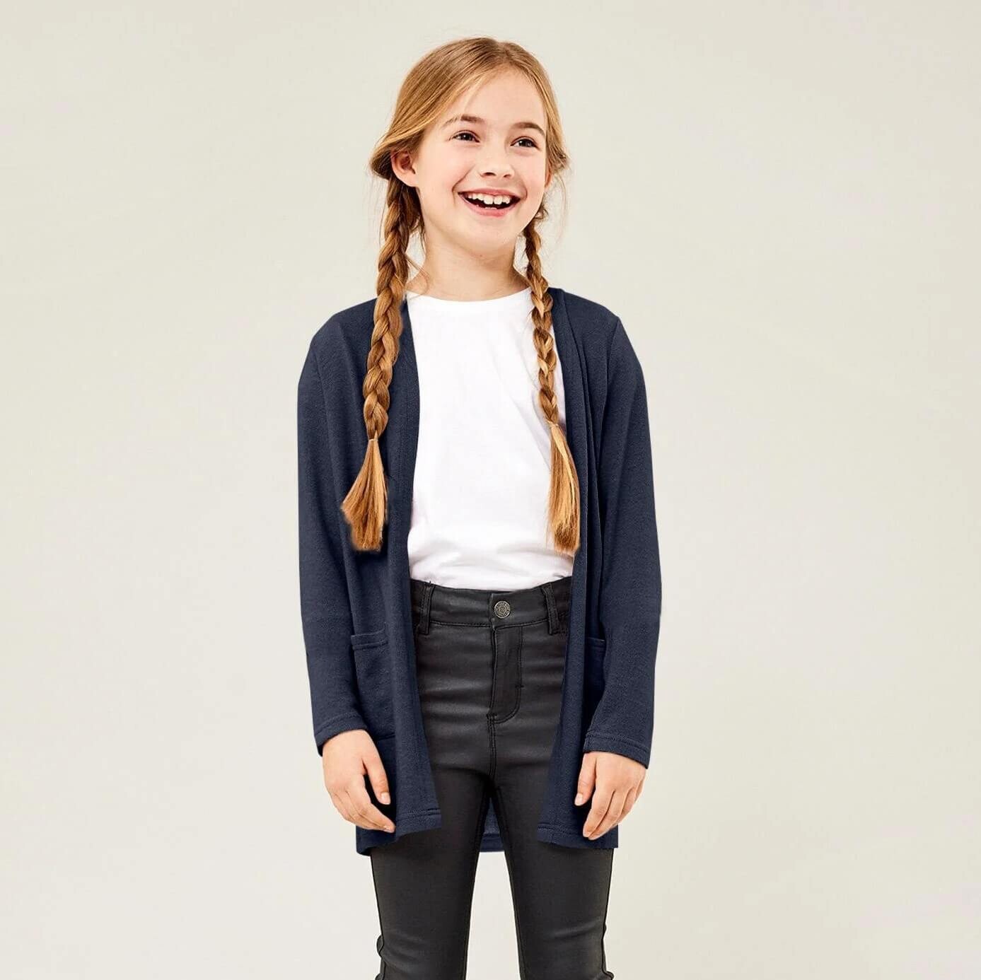 Длинный кардиган без застежек с двумя карманами спереди.