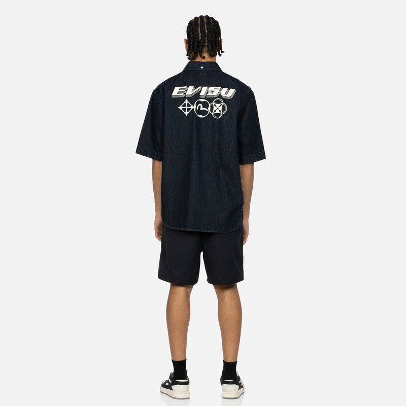 Рубашка мужская джинсовая синяя Evisu, синий 18 011₽