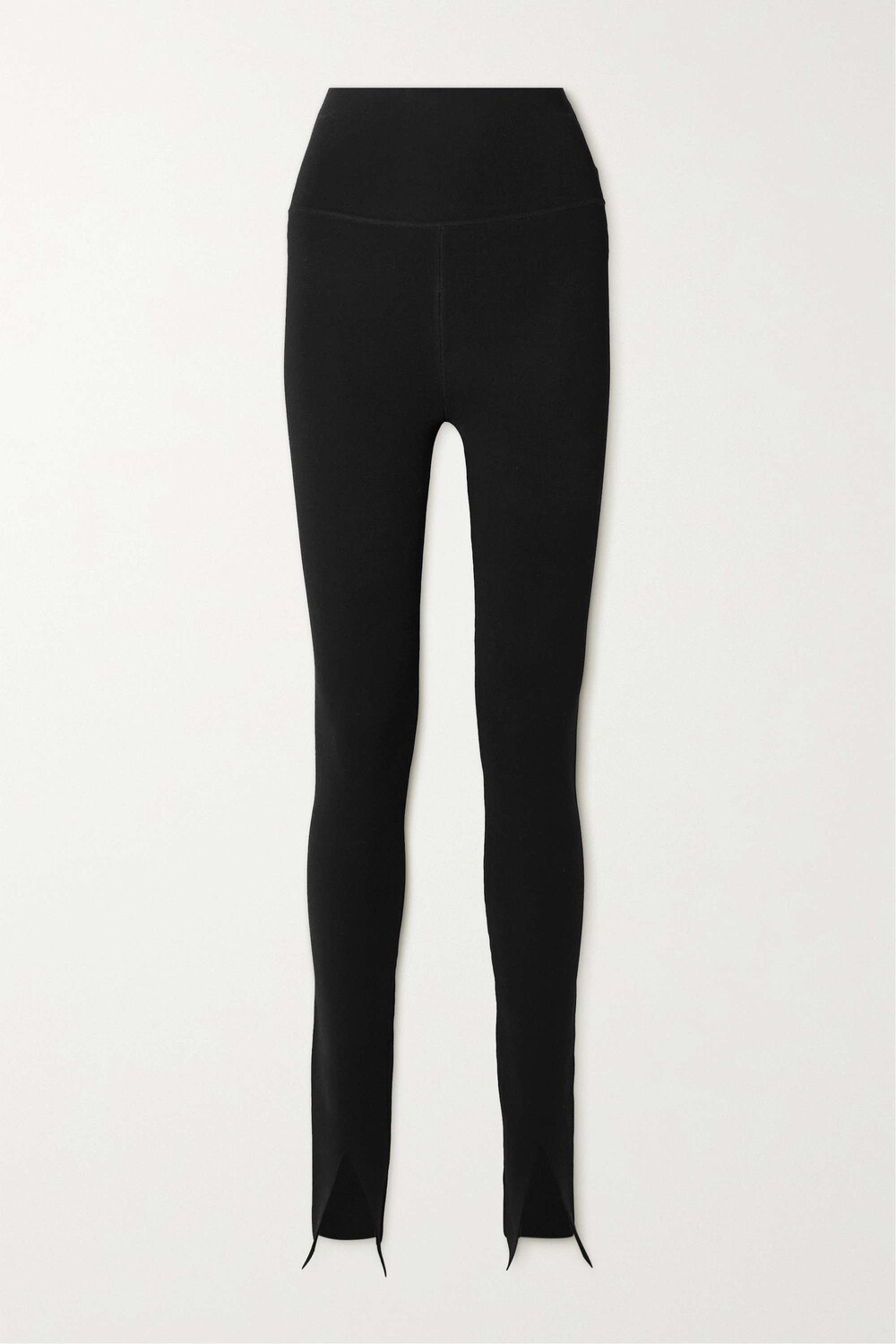 Разрезы на манжетах леггинсов Victoria Beckham будут обрамлять вашу обувь, будь то сандалии в стиле 90-х или массивные кроссовки. Они сделаны из приятного на ощупь эластичного трикотажа и имеют широкий пояс с высокой посадкой. Носите их с соответствующим укороченным топом.