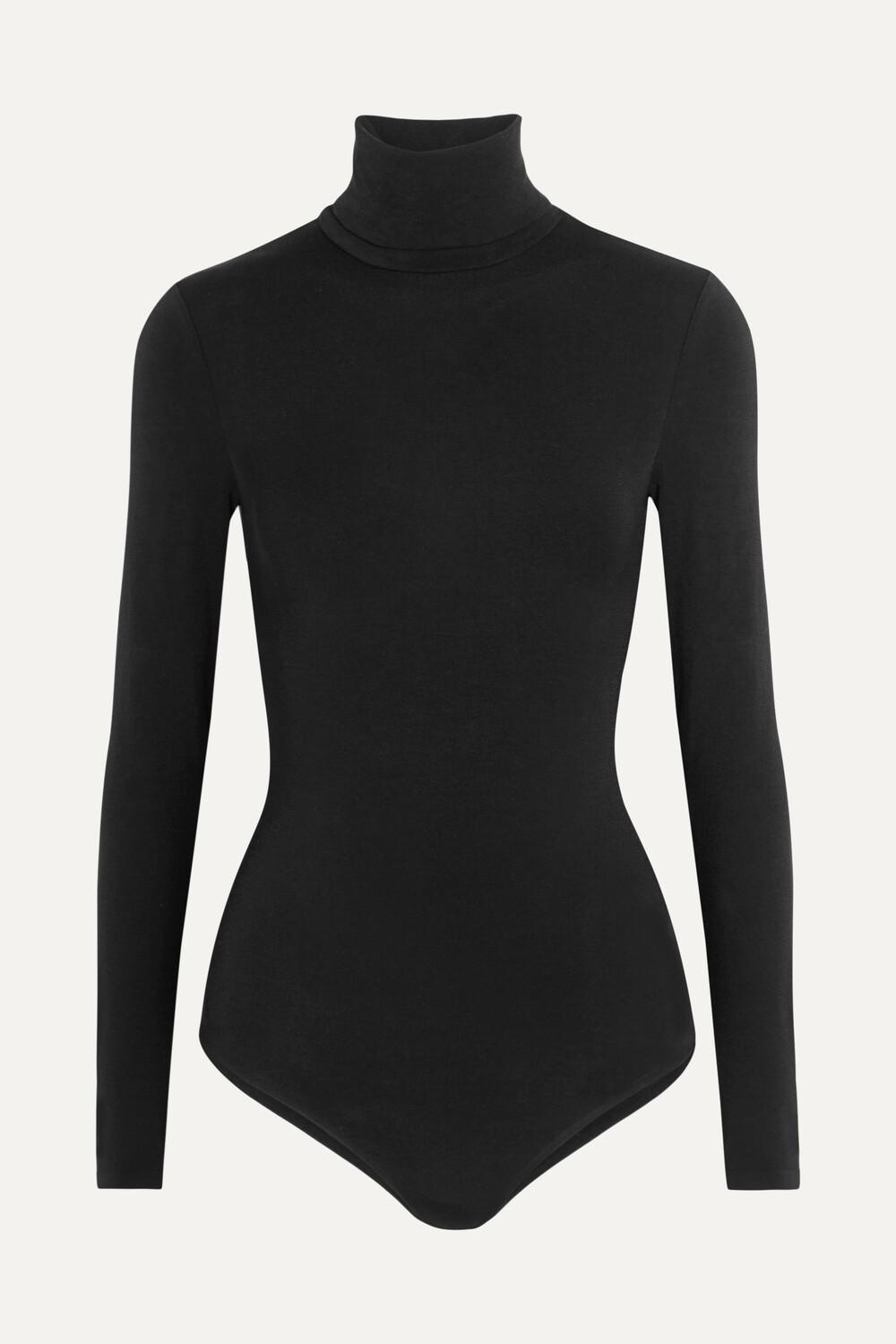 Техника бесшовного вязания Wolford обеспечивает безупречно гладкую посадку. Это мягкое эластичное боди, создающее ощущение второй кожи и смешанное с воздухопроницаемым хлопком, имеет обтягивающие трусики-стринги, которые не будут видны под облегающей одеждой или юбкой. Носите его с блейзером Totême, брюками Alexandre Vauthier, ботильонами The Row. , Браслет Пако Рабанн.