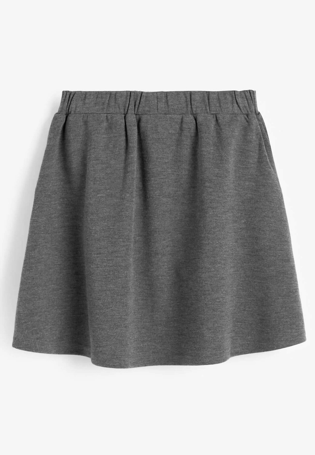 Расклешенная юбка из эластичной ткани без застежек с отделкой рюшами на карманах. Благодаря минимальному декору и сдержанному цвету эта модель гармонично впишется в повседневный школьный гардероб.