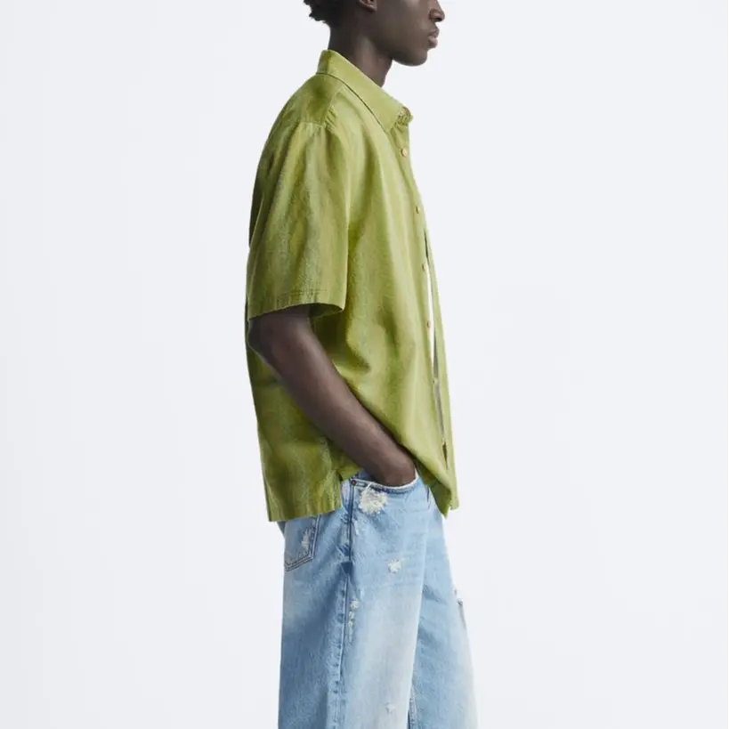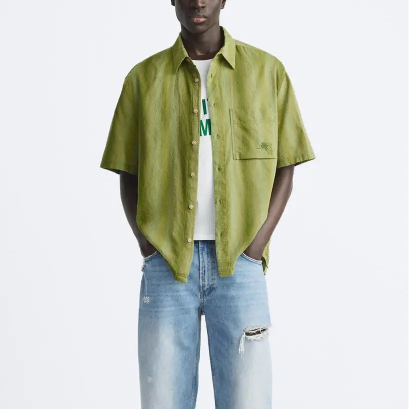 Рубашка мужская зеленая Zara, зеленый