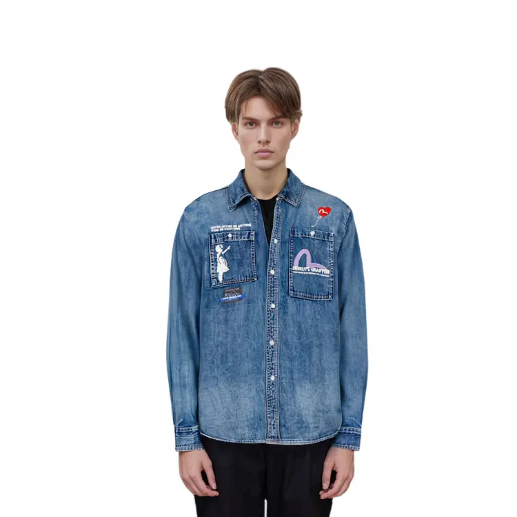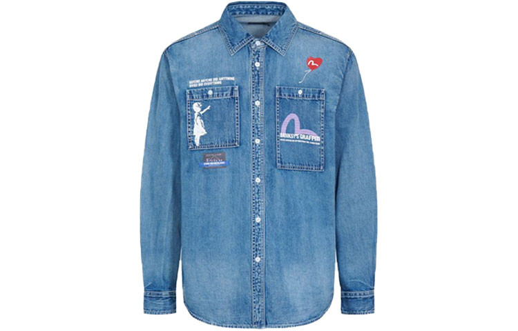 Рубашка мужская джинсовая синяя Evisu, синий 18 011₽