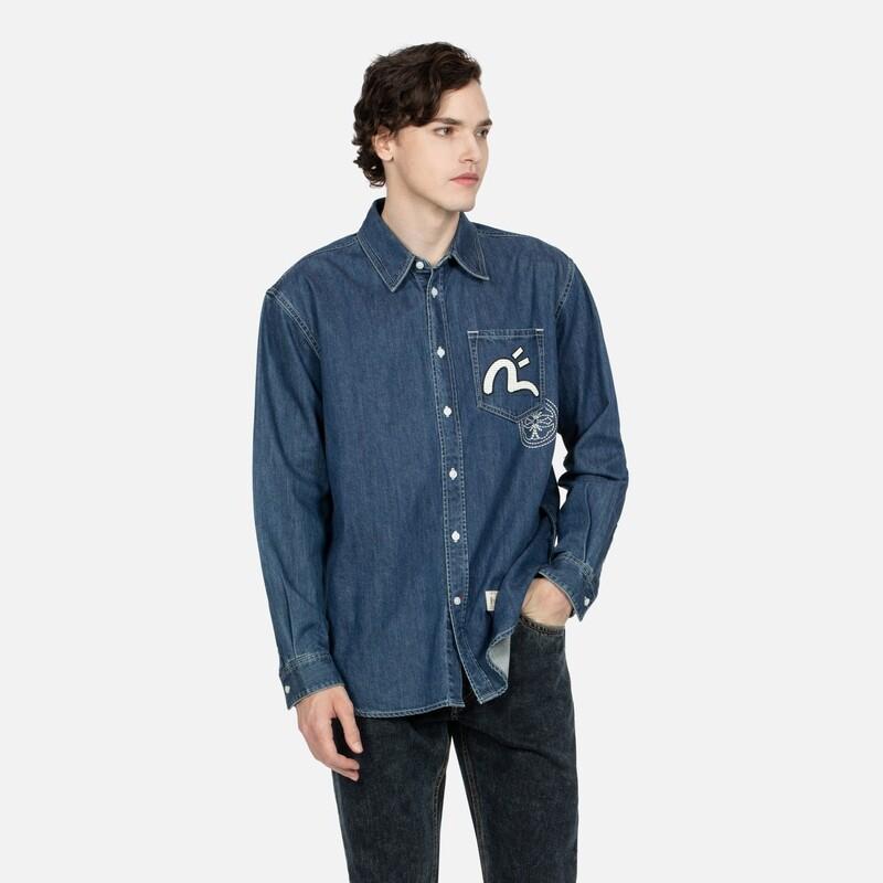 Рубашка мужская джинсовая синяя Evisu, синий