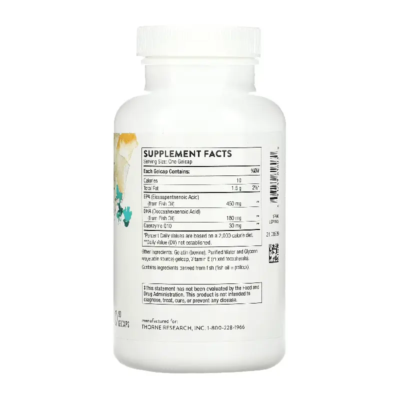 Omega-3 с коэнзимом Q10 сочетает эйкозапентаеновую и докозагексаеновую кислоты из рыбьего жира с антиоксидантом и способствующим производству энергии коэнзимом Q10, что способствует здоровью сердца, кровеносных сосудов и мозга.