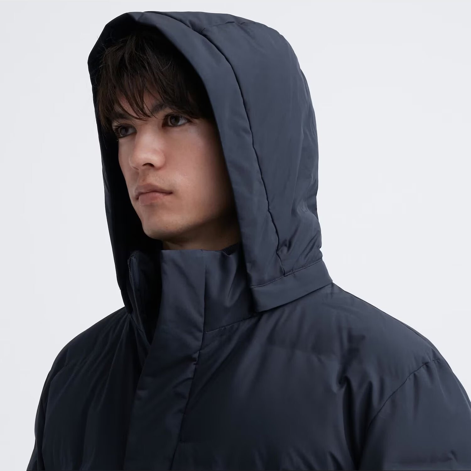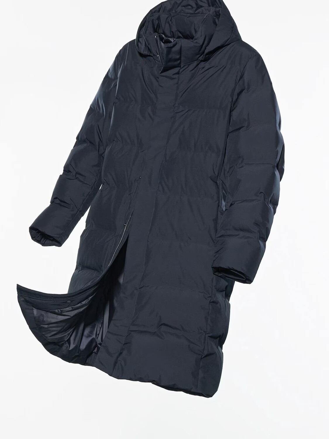 - Застежка капюшона прячется внутри воротника, обеспечивая аккуратный вид, подходящий для деловой одежды.