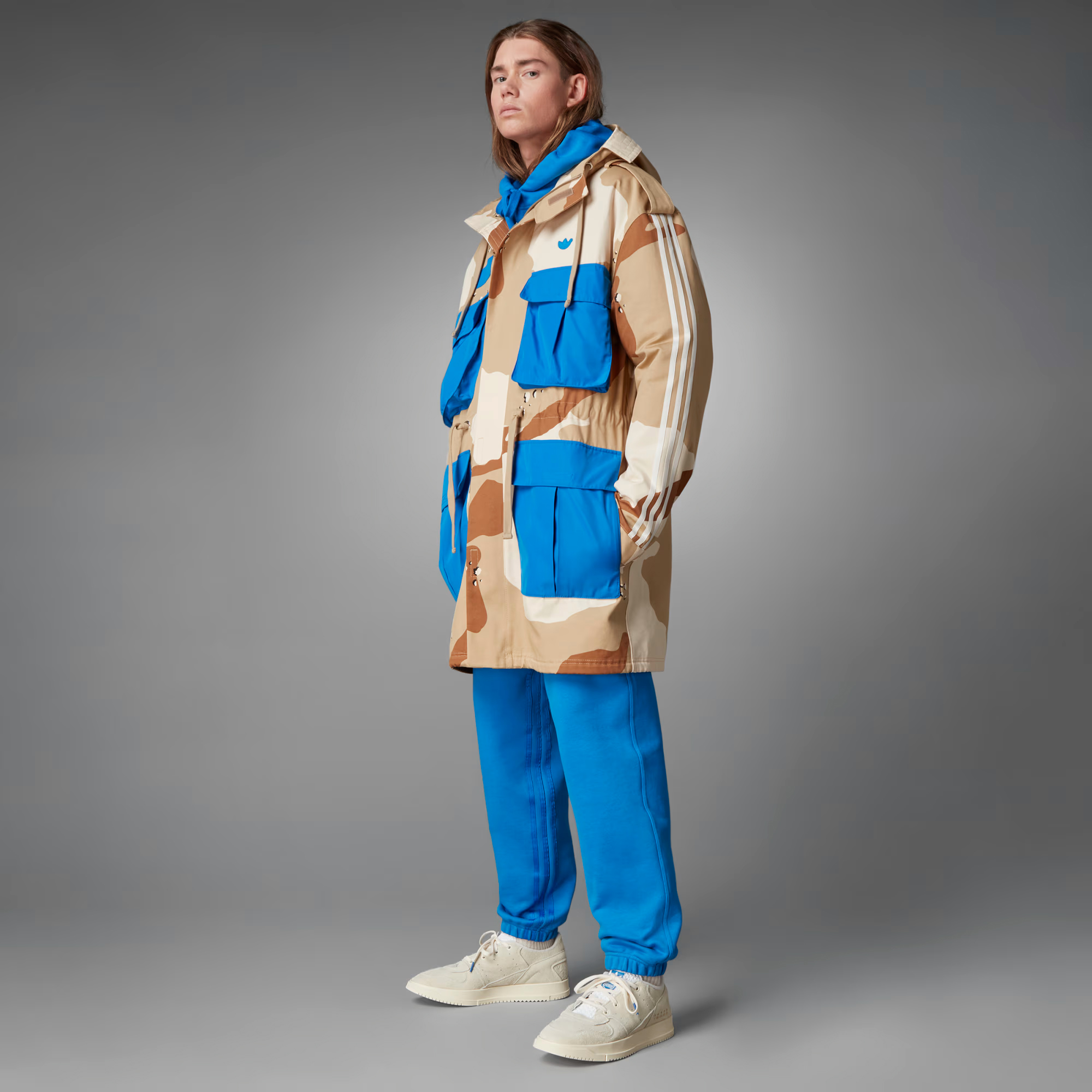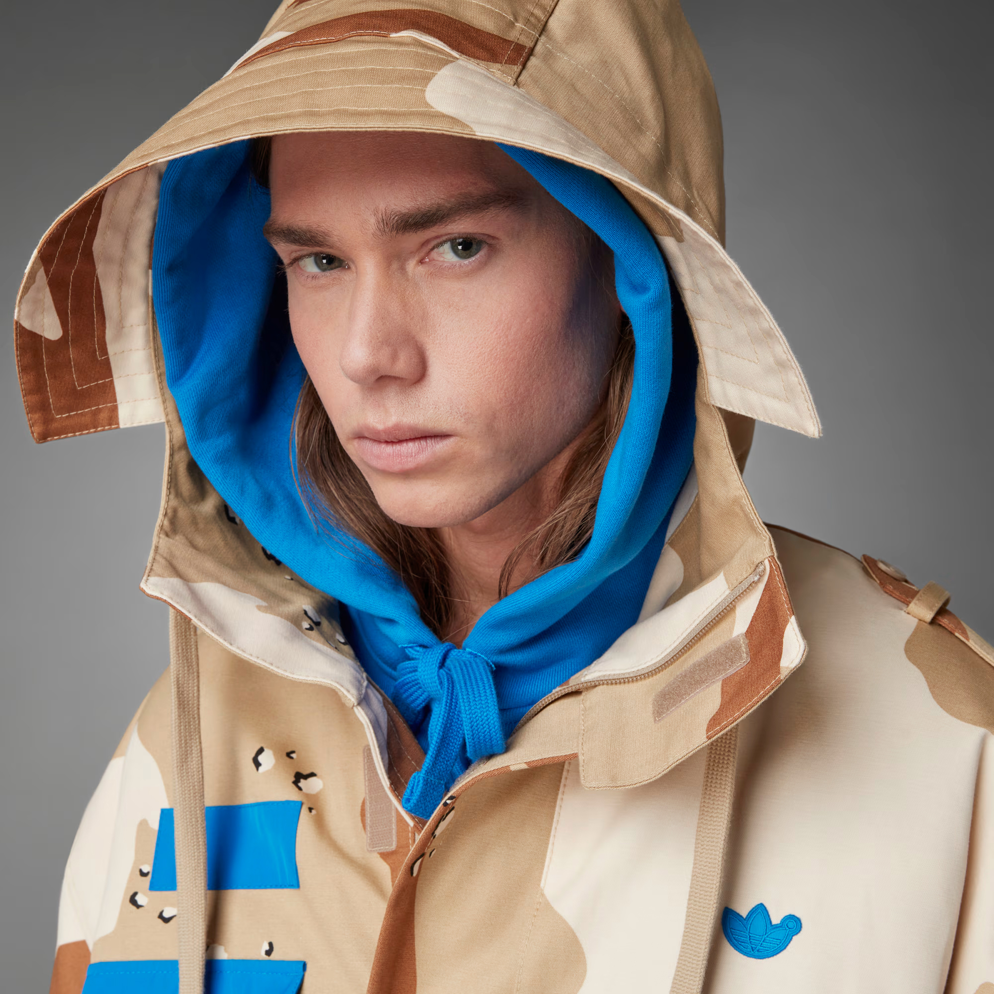 Коллекция Blue Version исследует ADN adidas Originals и переосмысливает ее самые знаковые элементы для современного мира. Несмотря на пустынный камуфляж по всей одежде, этот дизайн не должен оставаться незамеченным. Большие карманы в культовом цвете bluebird контрастируют с камуфляжным принтом, чтобы вы выделялись из толпы, не теряя при этом ценные предметы. Изготовленный из высококачественной ткани, с шапкой и прочными ветрозащитными лацканами, он имеет силуэт оверсайз, который защищает от непогоды без ущерба для стиля. Конструкция 2-в-1 включает в себя съемный вкладыш, который можно носить отдельно как легкую куртку.