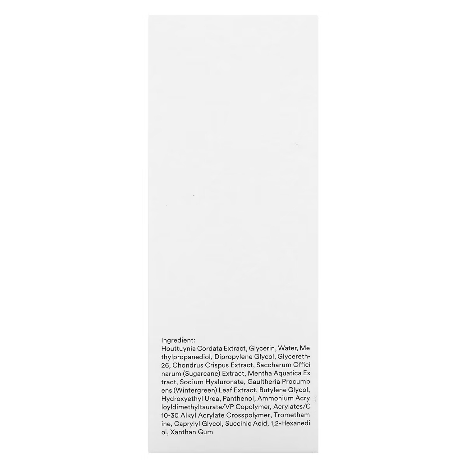Экстракт хауттюйнии сердцевидной (Houttuynia cordata), глицерин, вода, метилпропандиол, дипропиленгликоль, глицерет-26, экстракт ирландского мха (Chondrus crispus), экстракт сахарного тростника (Saccharum officinarum), экстракт мяты водной, гиалуронат натрия, экстракт листьев грушанки (Gaultheria procumbens), бутиленгликоль, гидроксиэтилированная мочевина, пантенол, аммоний акрилоилдиметилтаурат/ВП сополимер, акрилат/c10-30 алкил акрилат кроссполимер, трометамин, каприлилгликоль, янтарная кислота, 1,2-гександиол, ксантановая камедь. 1. Прекратите использование продукта при появлении покраснения, отека, раздражения или сыпи под воздействием прямых солнечных лучей; Если симптомы не исчезнут, обратитесь к врачу. 2. Не наносить на раны и поврежденную кожу. 3. Правила обращения и хранения 1) Хранить в недоступном для детей месте. 2) Хранить в защищенном от попадания прямых солнечных лучей месте. 4. Избегайте использования этого продукта детьми младше 3 лет. Вес: 90 гр Размеры: 10.9 x 4.3 x 4.1 см