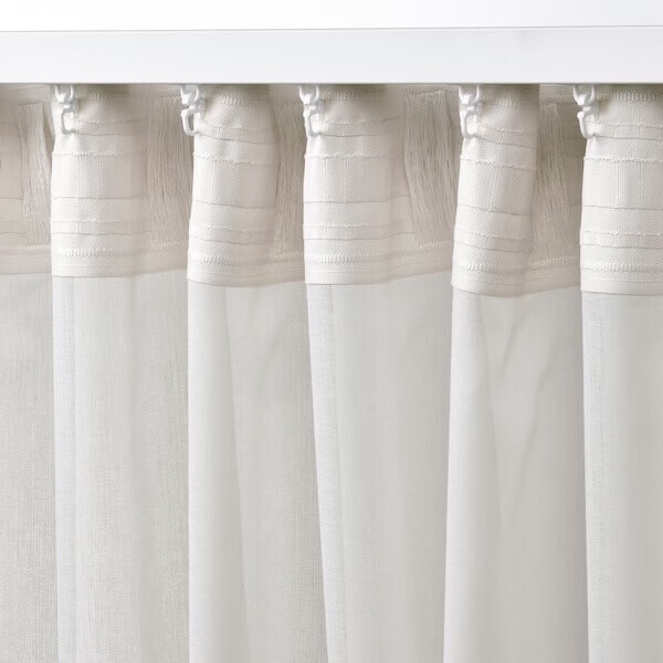 Прозрачные занавески Rosenrobinia снежно-белого цвета фильтрует свет и грациозно ниспадает, добавляя декоративный штрих к оформлению окна. Лента позволяет изменить способ подвешивания занавески. Идеально сочетается с плотной шторой, чтобы можно было менять степень проникновения света.