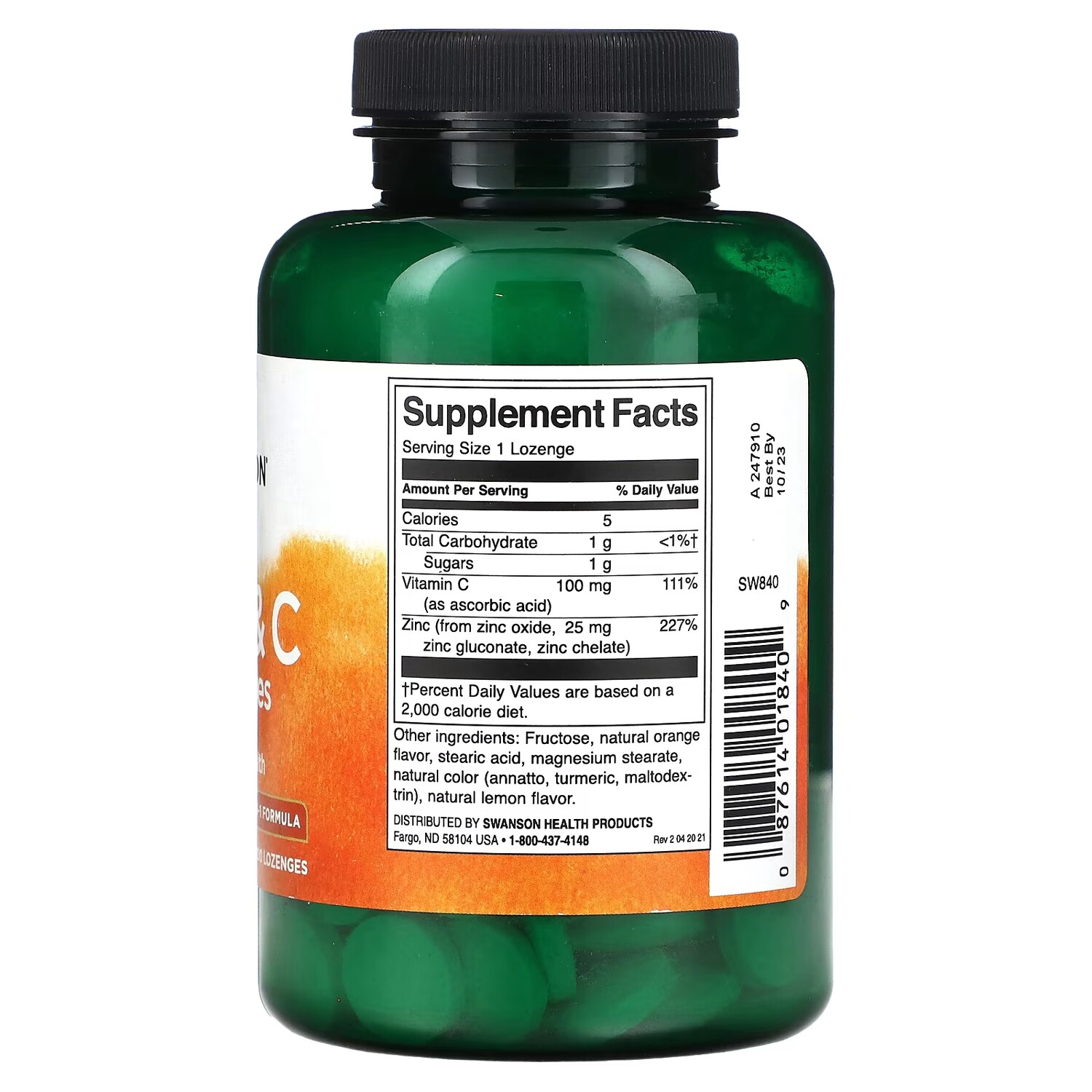 Здоровье иммунитета. Формула 2-в-1. Пищевая добавка. Комбинация мощных антиоксидантов укрепляет защитные силы организма. Витамин С с высокобиодоступным цинком для поддержки здоровья иммунной системы. Подтвержденное наукой качество с 1969 года. Поднимите защитные силы организма с помощью Swanson Zinc & C! Антиоксидантные свойства цинка и витамина С делают их отличным помощником в поддержке иммунной системы. Эти вкусные леденцы со вкусом лимона и апельсина содержат 100 мг витамина С и три формы цинка с высокой биодоступностью для иммуностимулирующего питания.