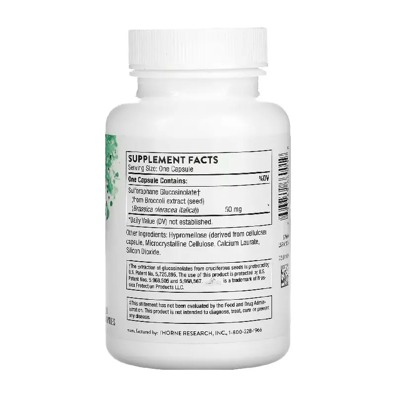 Crucera-SGS от Thorne попадая в организм расщепляться в кишечнике, высвобождая сульфорафан, тем самым активируя естественную детоксикацию организма и антиоксидантные ферменты и обеспечивая защиту клеток от повреждения свободными радикалами в течение нескольких дней.