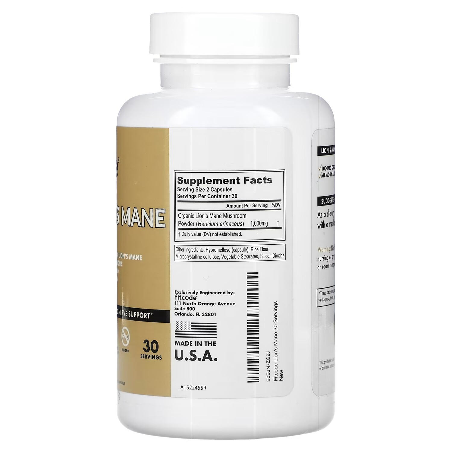 Добавка FITCODE львиная грива, 500 мг, 60 растительных капсул