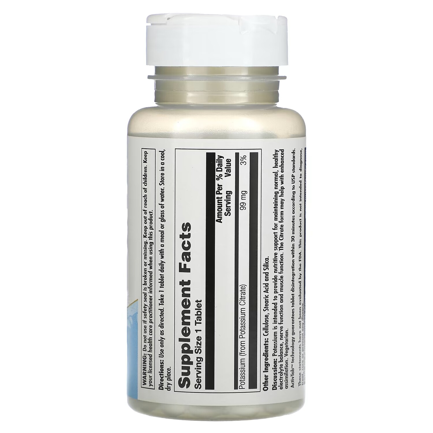 Калий предназначен для обеспечения нутритивной поддержки для поддержания нормального, здорового электролитного баланса, функции нервной и мышечной системы. Форма цитрата может помочь с улучшенным усвоением. Технология ActivTab гарантирует распад таблетки в течение 30 минут в соответствии со стандартами USP.