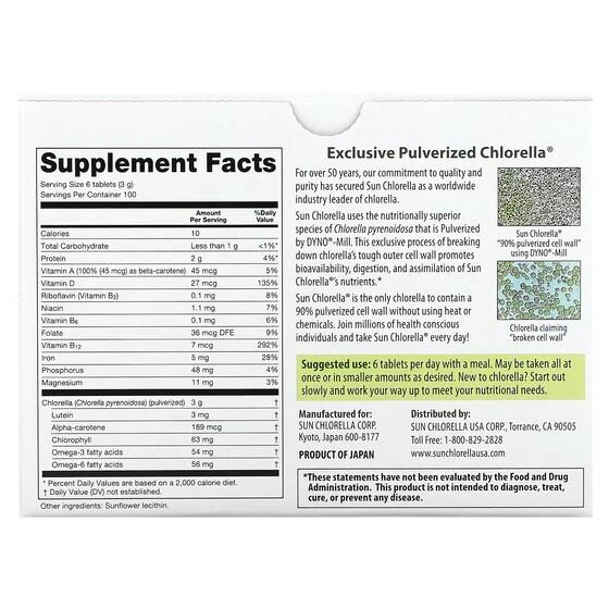 Без глютена. Sun Chlorella использует виды Chlorella pyrenoidosa с лучшими питательными свойствами, измельченные DYNO-Mill. Этот эксклюзивный процесс разрушения жесткой внешней клеточной стенки хлореллы способствует биодоступности, усвоению и усвоению питательных веществ Sun Chlorella. Sun Chlorella - единственная хлорелла, клеточная стенка которой на 90 % измельчена без использования тепла или химикатов.