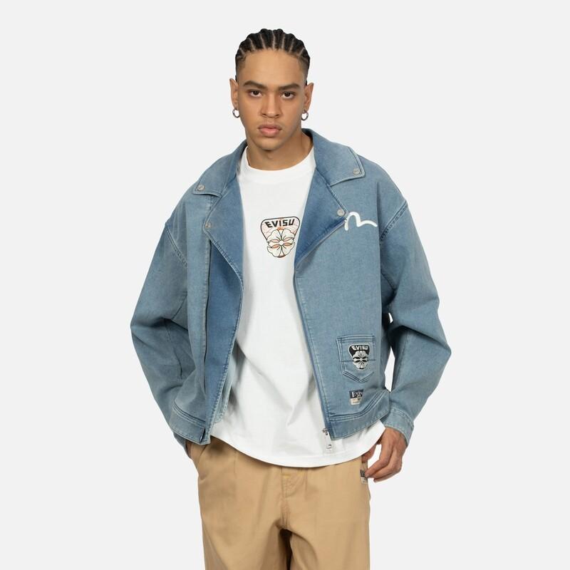 Джинсовая куртка мужская джинсовая синяя Evisu, синий