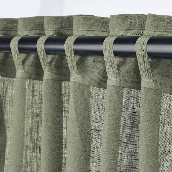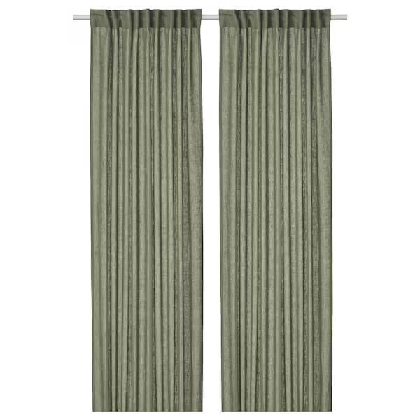 Льняные шторы серо-зеленого цвета фильтруют свет и обеспечивают конфиденциальность. Лен никогда не выйдет из моды — будь то деревенский, повседневный или элегантный образ. Прочный и неподвластный времени лен с неравномерной текстурой, которая кажется плотной, но становится мягче после каждой стирки. Идеально подходит для любого сезона, так как натуральные волокна дышат и позволяют воздуху циркулировать.