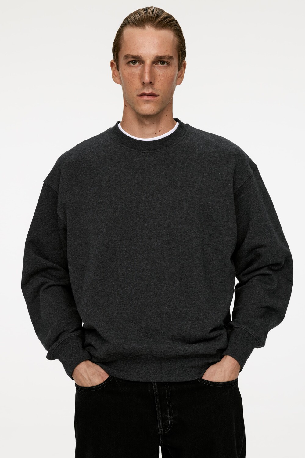Хлопковая толстовка из френч терри. Свободный фасон со слегка заниженными плечами. Ребристая отделка.