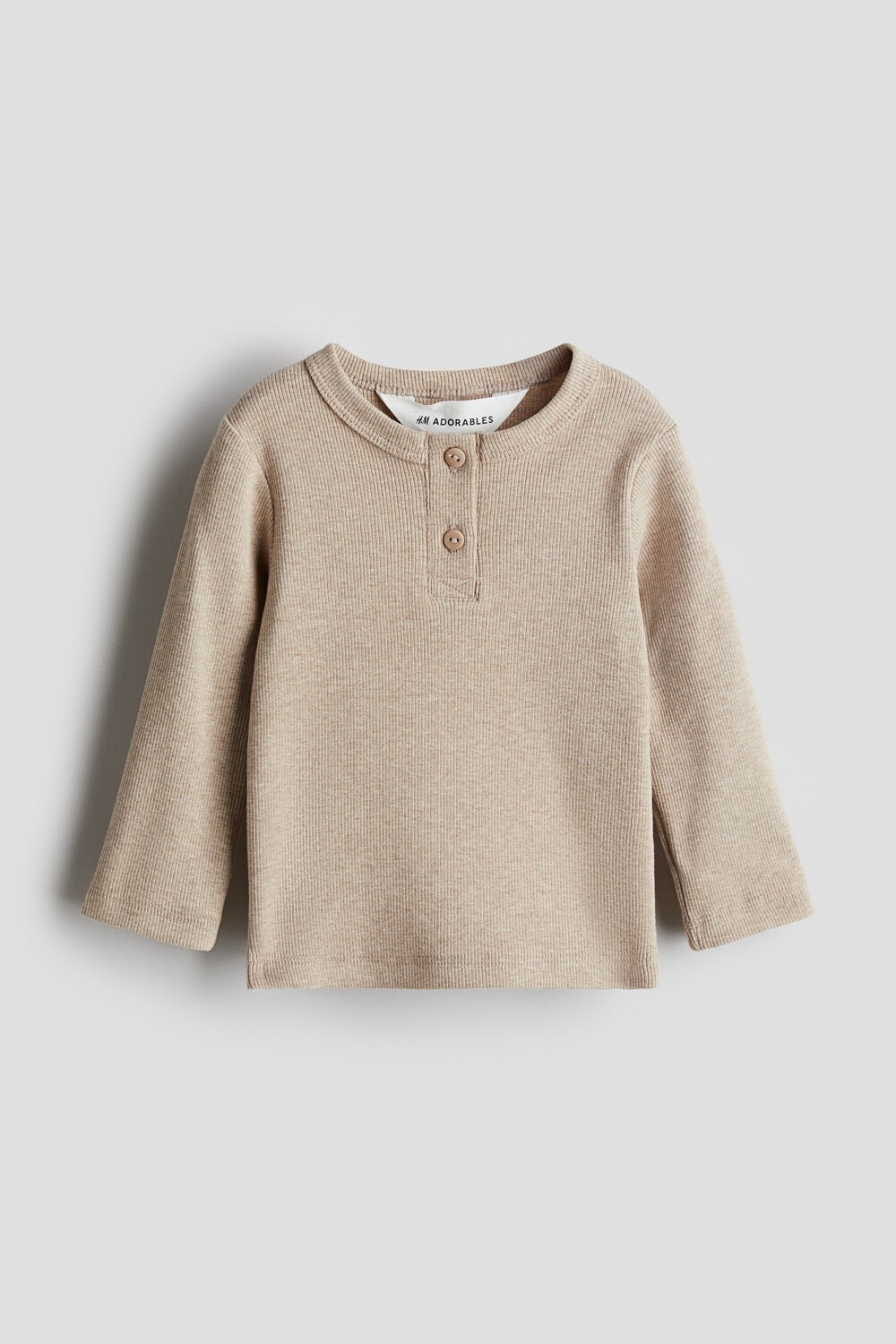 Бренд: H&M Цвет: бежевый Прелести H&M. Рубашка на пуговицах из мягкого ребристого трикотажа из высококачественного хлопка. Круглый вырез горловины, планка на пуговицах и длинные рукава. H&M Adorables — это тщательно подобранная коллекция вневременной и удобной одежды высокого качества. ДЛИНА: Стандартная длина ДЛИНА РУКАВА: Длинный рукав КОНТАКТ: Классический крой ВОРОТНИК: Хенли СТИЛЬ: Хенли рубашка ВЫРЕЗ: Круглый вырез КОНЦЕПЦИЯ: H&M Adorables