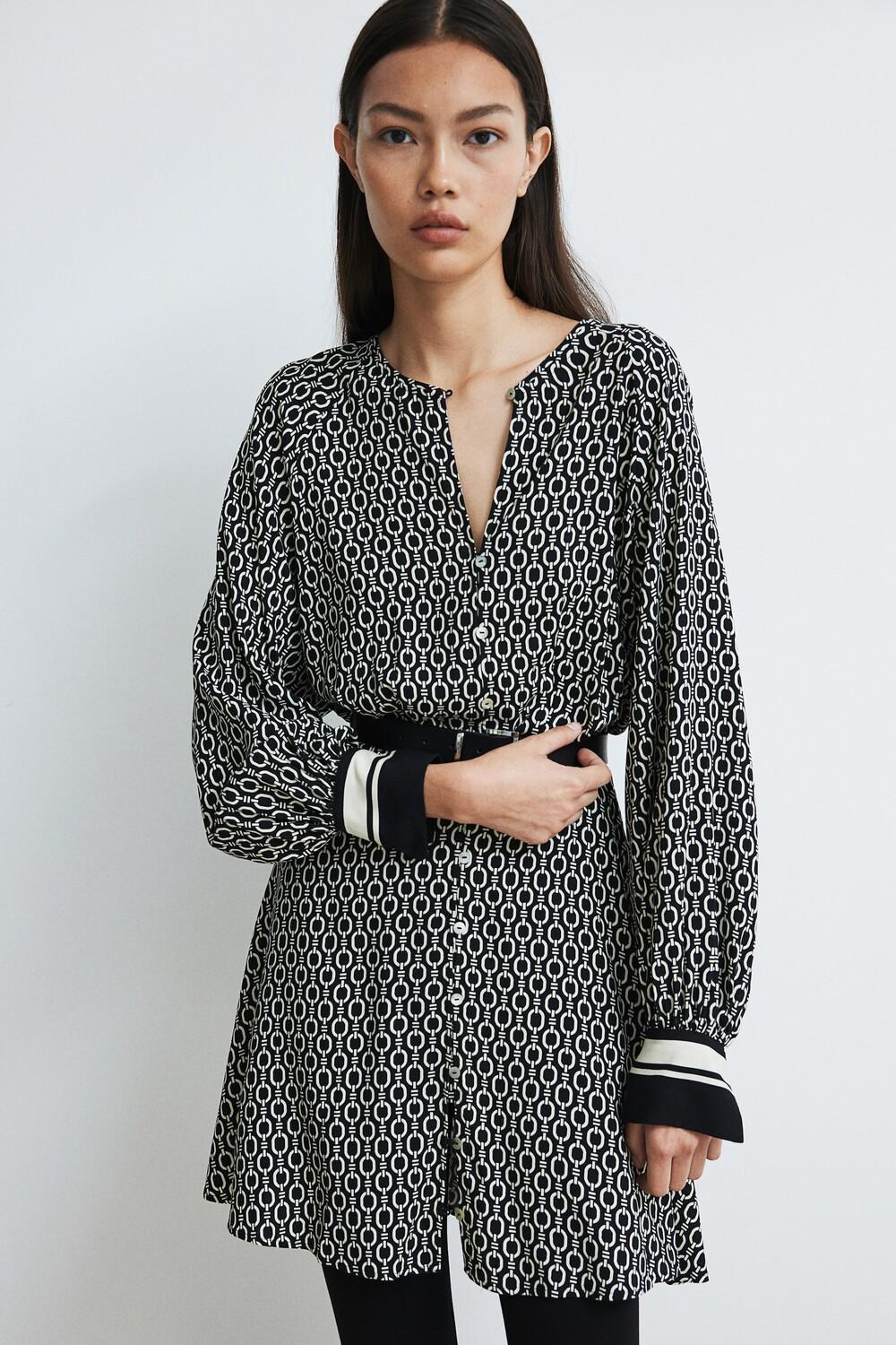 Бренд: H&M Цвет: черный Короткое платье из вискозной ткани с круглым вырезом и перламутровыми пуговицами. Длинные рукава реглан и широкие манжеты с разрезом и пуговицей. Складки спереди, узкая резинка сзади на талии и слегка расклешенная юбка. Без подкладки. РАЗМЕР МОДЕЛИ: Рост модели 175 см/5 футов 9 дюймов, размер M. ДЛИНА: Короткая ДЛИНА РУКАВА: Длинный рукав КОНТАКТ: Обычный крой Воротник: Воротник-лента ВЫРЕЗ: Круглый вырез ВИД РУКАВА: Рукава реглан.