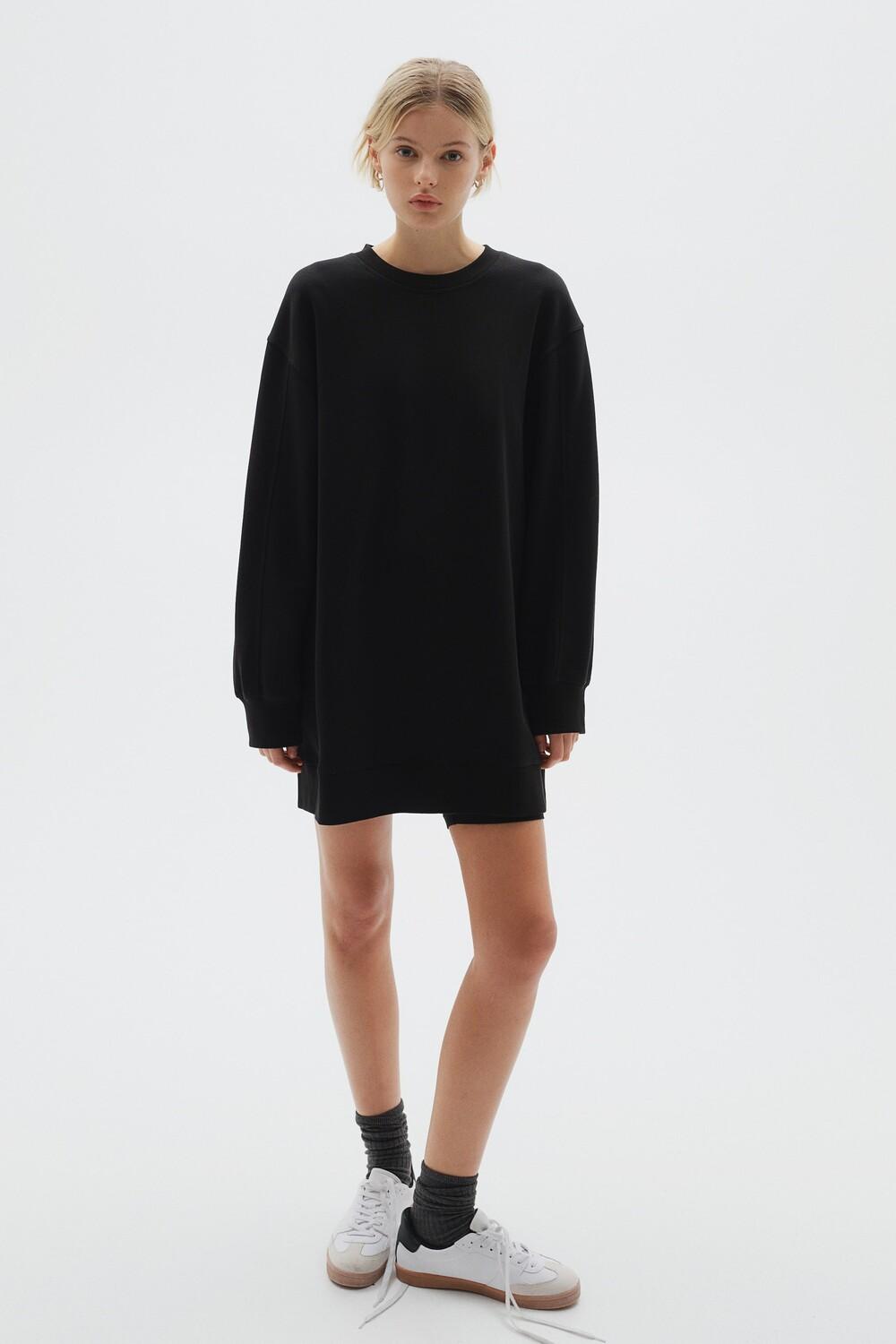 Бренд: H&M Цвет: черный Короткое платье из легкой тренировочной ткани с плоскими швами для дополнительного комфорта. Круглый ребристый вырез, заниженная линия плеча и свободный крой. Ребристые манжеты и подол. РАЗМЕР МОДЕЛИ: Рост модели 175 см/5 футов 9 дюймов, размер S. РАЗМЕР: Рукав: Длина: 56,0 см (размер M) ДЛИНА: Короткая ДЛИНА РУКАВА: Длинный рукав ФИЛЬМ: Свободный крой СТИЛЬ: Платье-пуловер ВЫРЕЗ: Круглый вырез КОНЦЕПЦИЯ: БАЗОВЫЕ, РАЗДЕЛЕННЫЕ