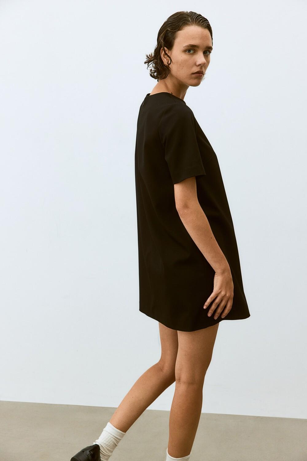 Бренд: H&M Цвет: черный Короткое платье из тканого материала с круглым вырезом и разрезом на потайной пуговице. Вытачки на груди, короткие рукава и прямой подол. Без подкладки. РАЗМЕР МОДЕЛИ: рост модели 176 см/5 футов 9 дюймов, размер M. РАЗМЕР: Рукав: Длина: 26,0 см (размер M), спинка: Длина: 83,0 см (размер M). , Плечо: Ширина: 40,5 см (размер M) ДЛИНА: Короткая ДЛИНА РУКАВА: Короткий рукав ПОСАДКА: Классический крой СТИЛЬ: А-силуэт ШЕЯ: Круглый вырез