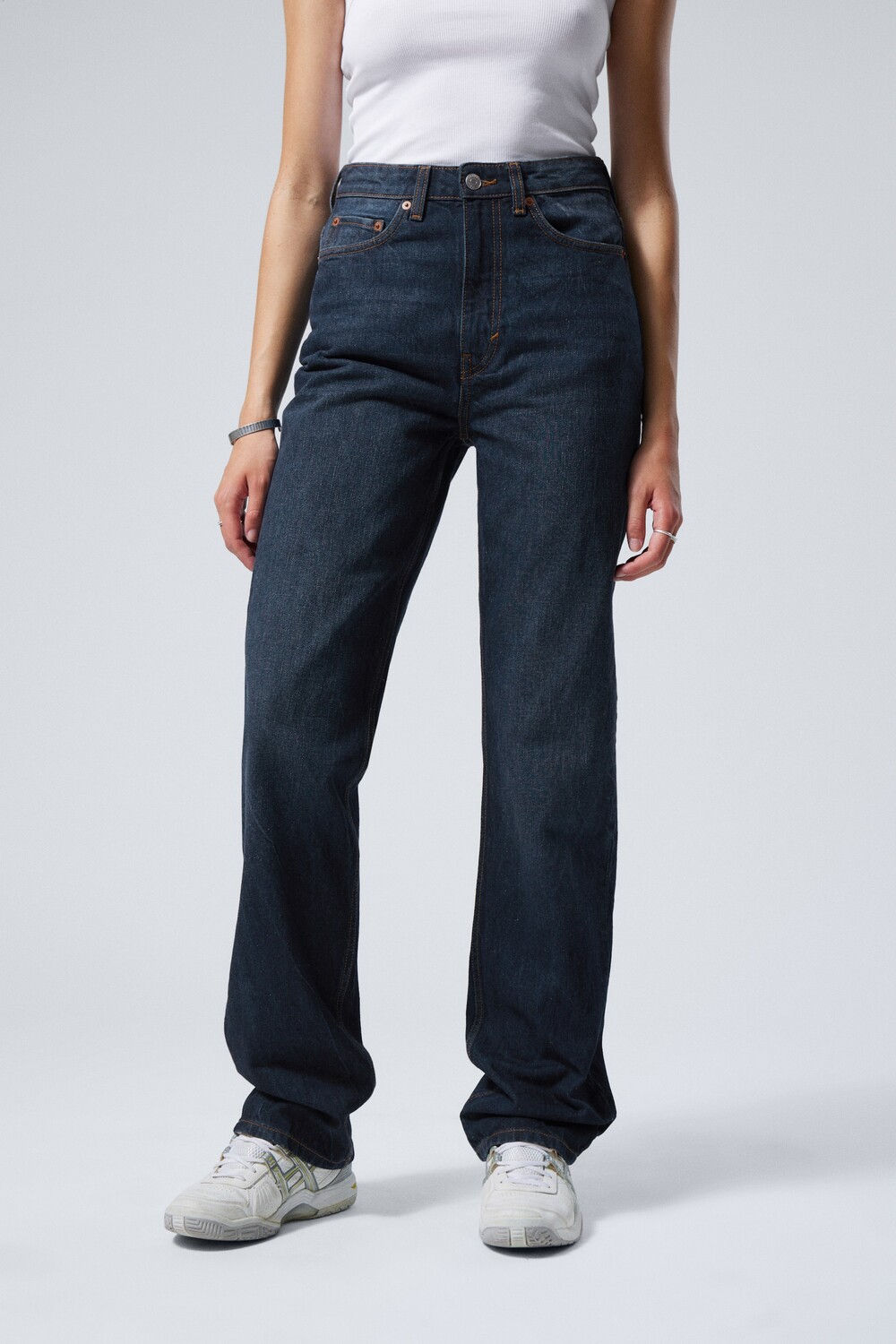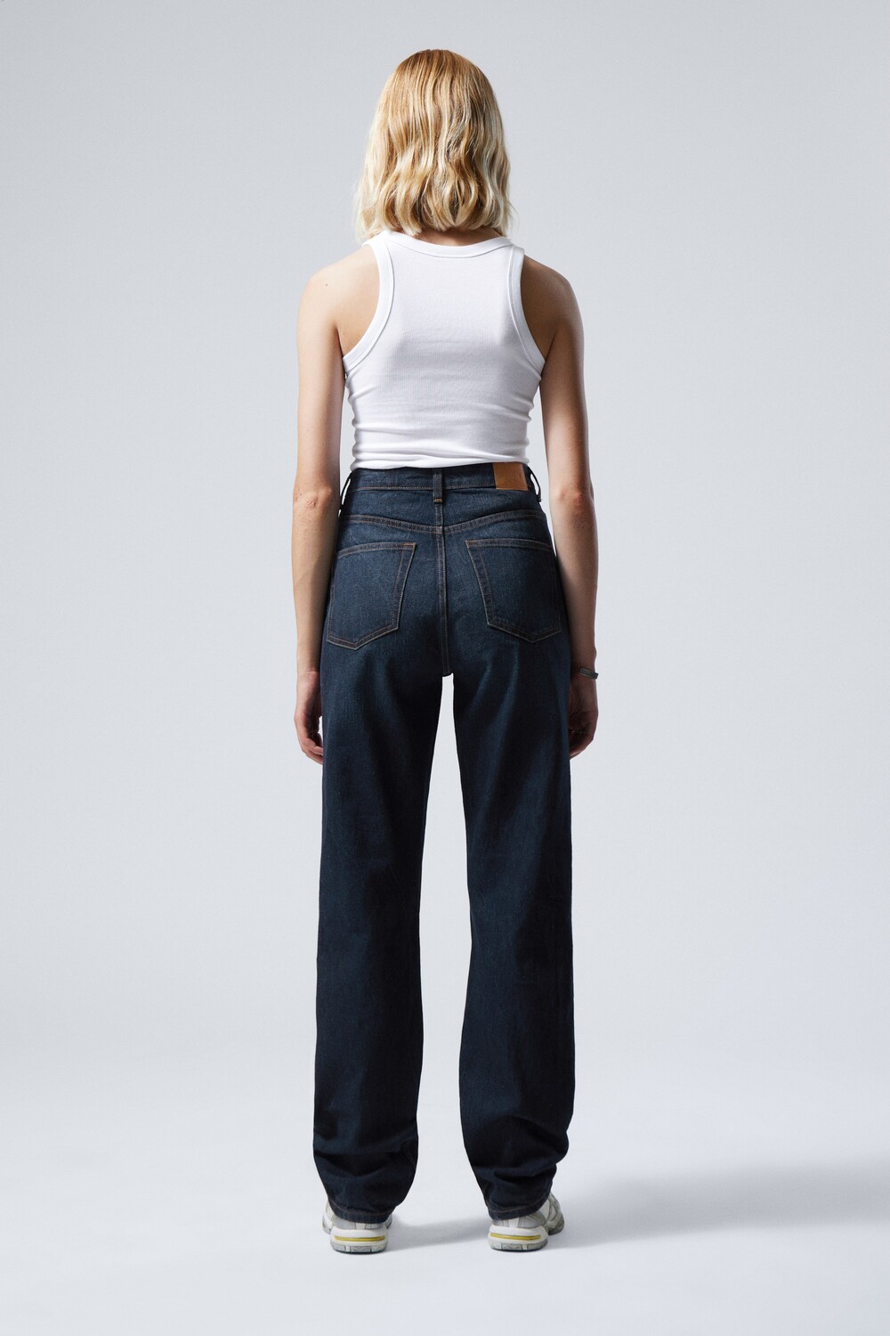 Бренд: Weekday Цвет: синий Пара прямых джинсов с очень высокой талией из жесткого денима, изготовленного из органического и переработанного хлопка. Этот популярный фасон имеет стандартный крой, классические детали с пятью карманами и хорошо сочетается с большинством обуви. РОСТ МОДЕЛИ: Рост модели 176 см/5 футов 9 дюймов, на ней размер 27/34. ДЛИНА. : Длинный Высота талии: Высокая талия Посадка: Стандартная посадка СТИЛЬ: Прямые брюки