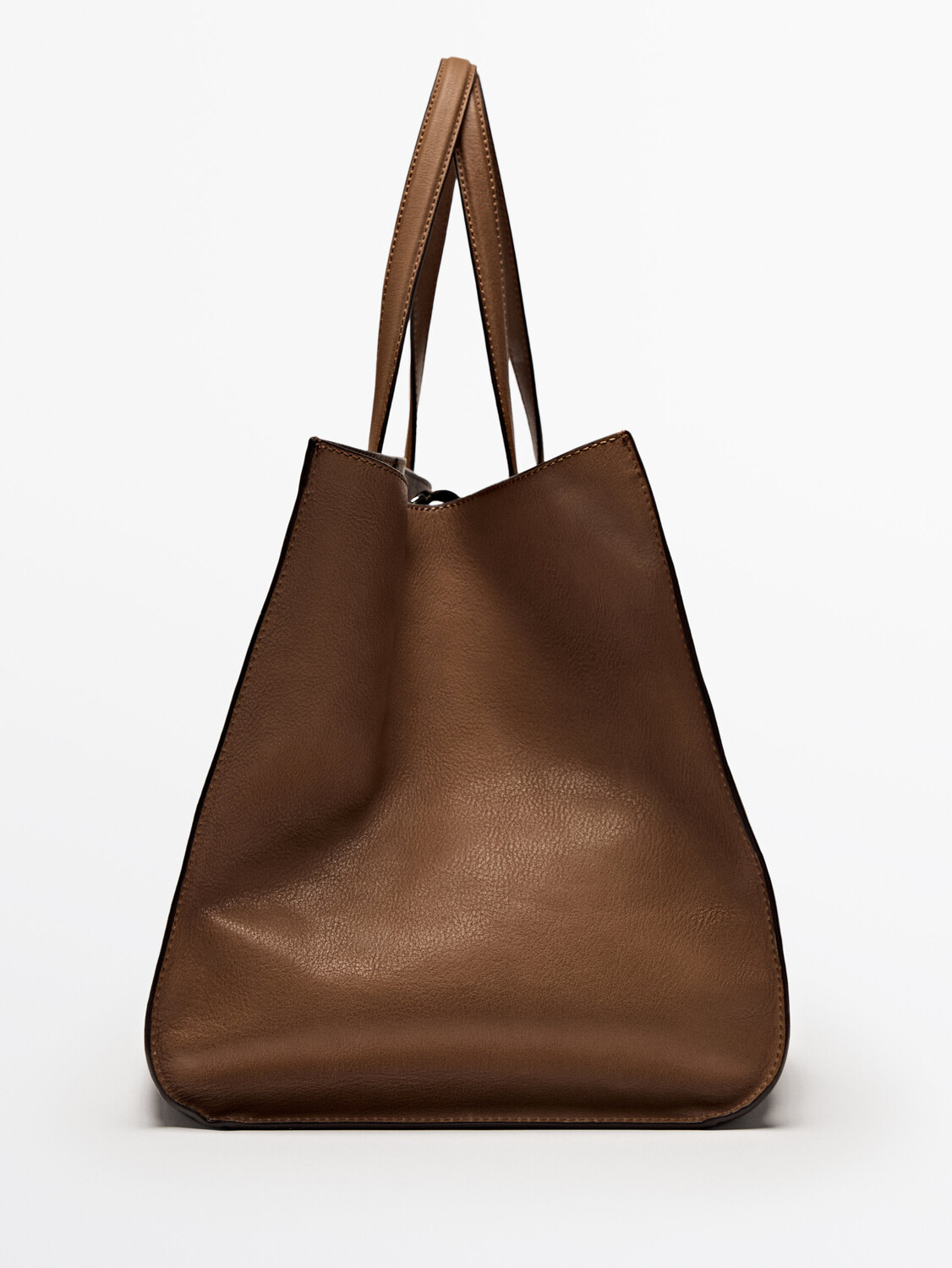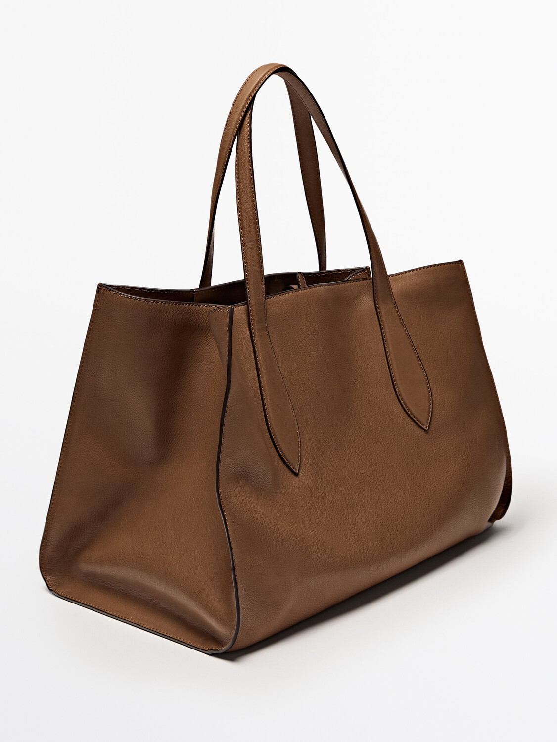 Сумка-тоут Maxi с внутренней пряжкой. Основное отделение. Имеет два отделения для заметок или документов. Две ручки и/или плечевой ремень. Подкладка из хлопка. Изготовлена из бычьей кожи. Отделка наппа.