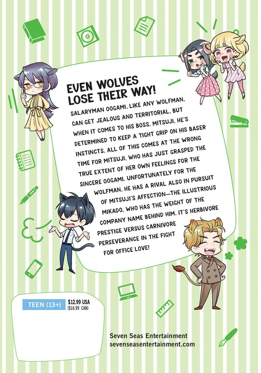 Служащий Огами, как и любой человек-волк, может быть ревнивым и территориальным, но когда дело доходит до его босса Мицудзи, он полон решимости держать свои низменные инстинкты в узде. Все это происходит в неподходящее время для Мицудзи, которая только что осознала истинную глубину своих чувств к искреннему Огами. К несчастью для человека-волка, у него также есть соперник, который также гонится за привязанностью Мицудзи — прославленный Микадо, за которым стоит вес имени компании. Это престиж травоядного против упорства плотоядного в борьбе за офисную любовь!