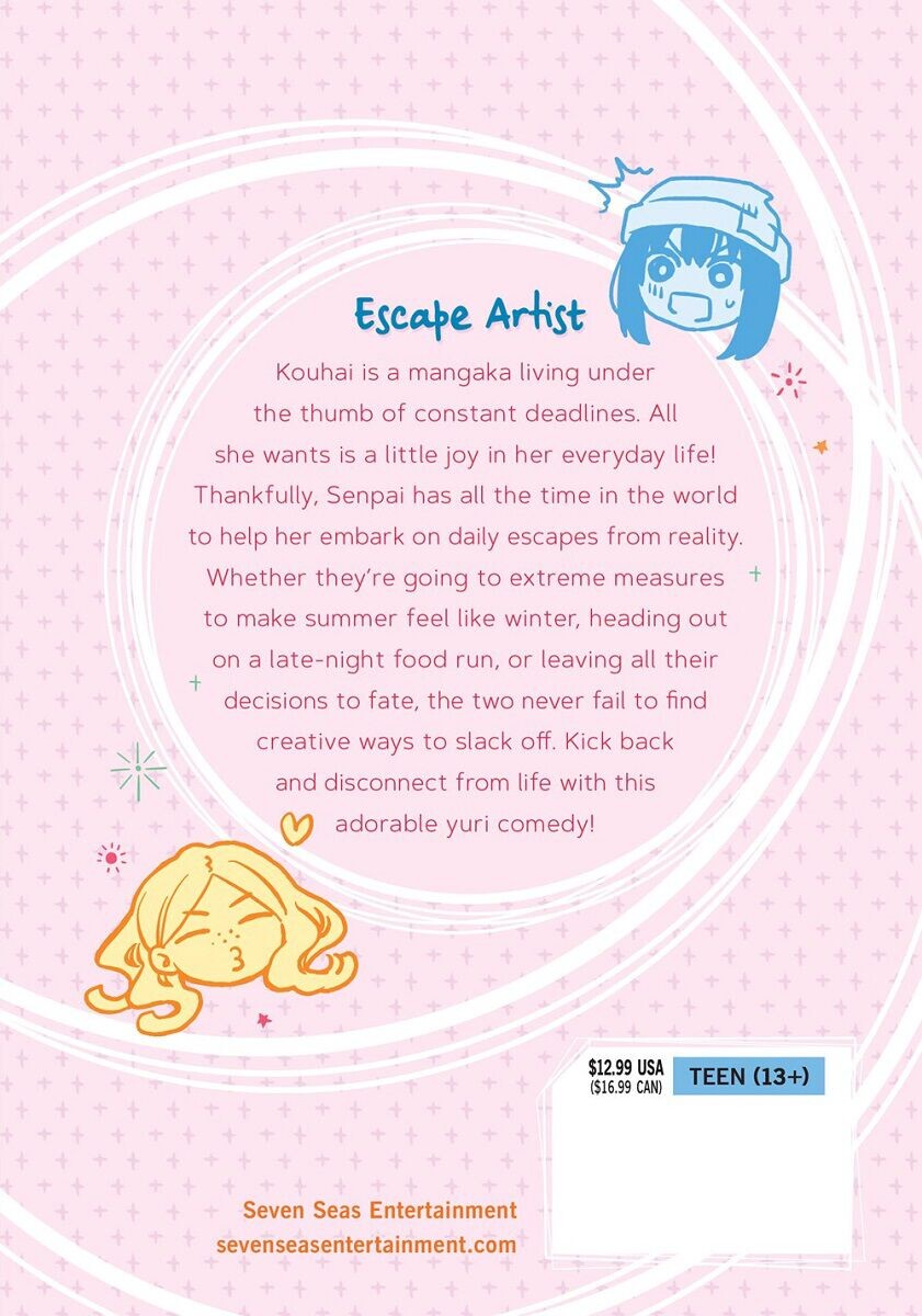Kouhai — мангака, живущая под пятой постоянных дедлайнов. Все, что ей нужно, — это немного радости в повседневной жизни! К счастью, у Senpai есть все время в мире, чтобы помочь ей отправиться в ежедневный побег от реальности. Независимо от того, идут ли они на крайние меры, чтобы лето ощущалось как зима, отправляются ли они в ночной поход за едой или оставляют все свои решения на волю случая, эти двое никогда не упускают возможности найти креативные способы расслабиться. Расслабьтесь и отключитесь от жизни с этой очаровательной юри-комедией!