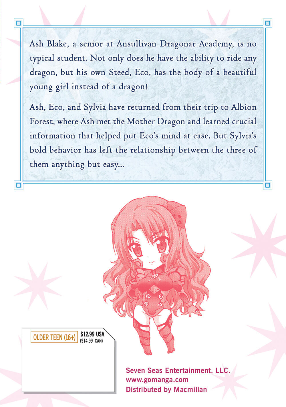 «Эш Блейк, выпускник Академии драконов Ансулливан, нетипичный ученик. Он не только умеет ездить на любом драконе, но и его собственный конь, Эко, имеет тело прекрасной молодой девушки вместо дракона!