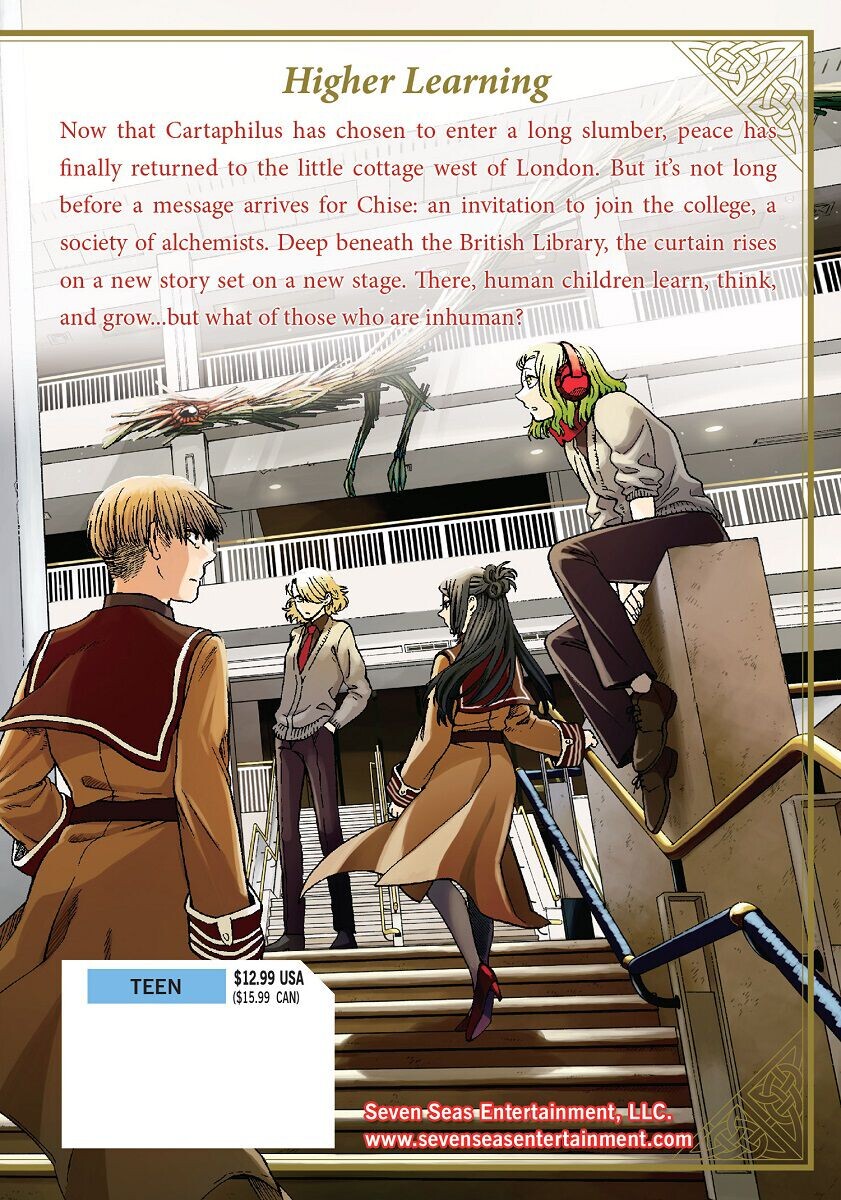 Теперь, когда Картафилус решил погрузиться в долгий сон, мир наконец-то вернулся в маленький коттедж к западу от Лондона. Но вскоре Чисе приходит сообщение: приглашение присоединиться к колледжу, обществу алхимиков. Глубоко под Британской библиотекой поднимается занавес над новой историей, разворачивающейся на новой сцене. Там человеческие дети учатся, думают и растут... но что насчет тех, кто не является человеком?