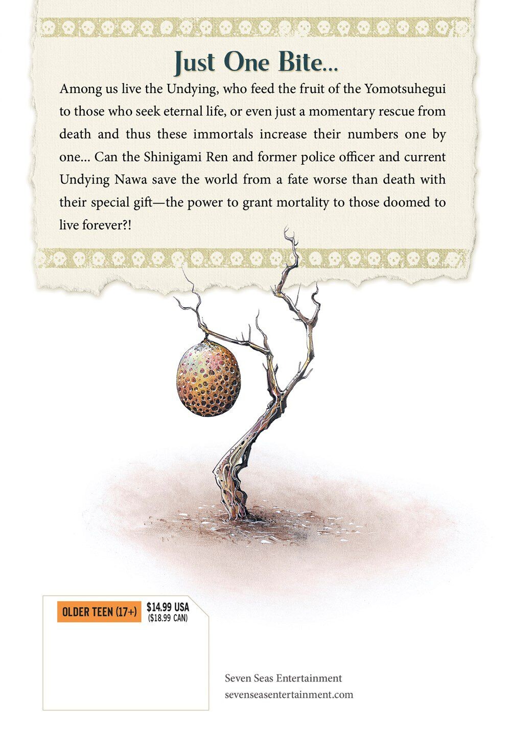 Среди нас живут Бессмертные, которые кормят плодами Ёмоцухегуй тех, кто ищет вечной жизни или хотя бы кратковременного спасения от смерти, и таким образом эти бессмертные увеличивают свою численность один за другим... Смогут ли Шинигами Рэн и бывший полицейский, а ныне Бессмертный Нава спасти мир от участи, худшей, чем смерть, с помощью своего особого дара — силы даровать смертность тем, кто обречен жить вечно?!
