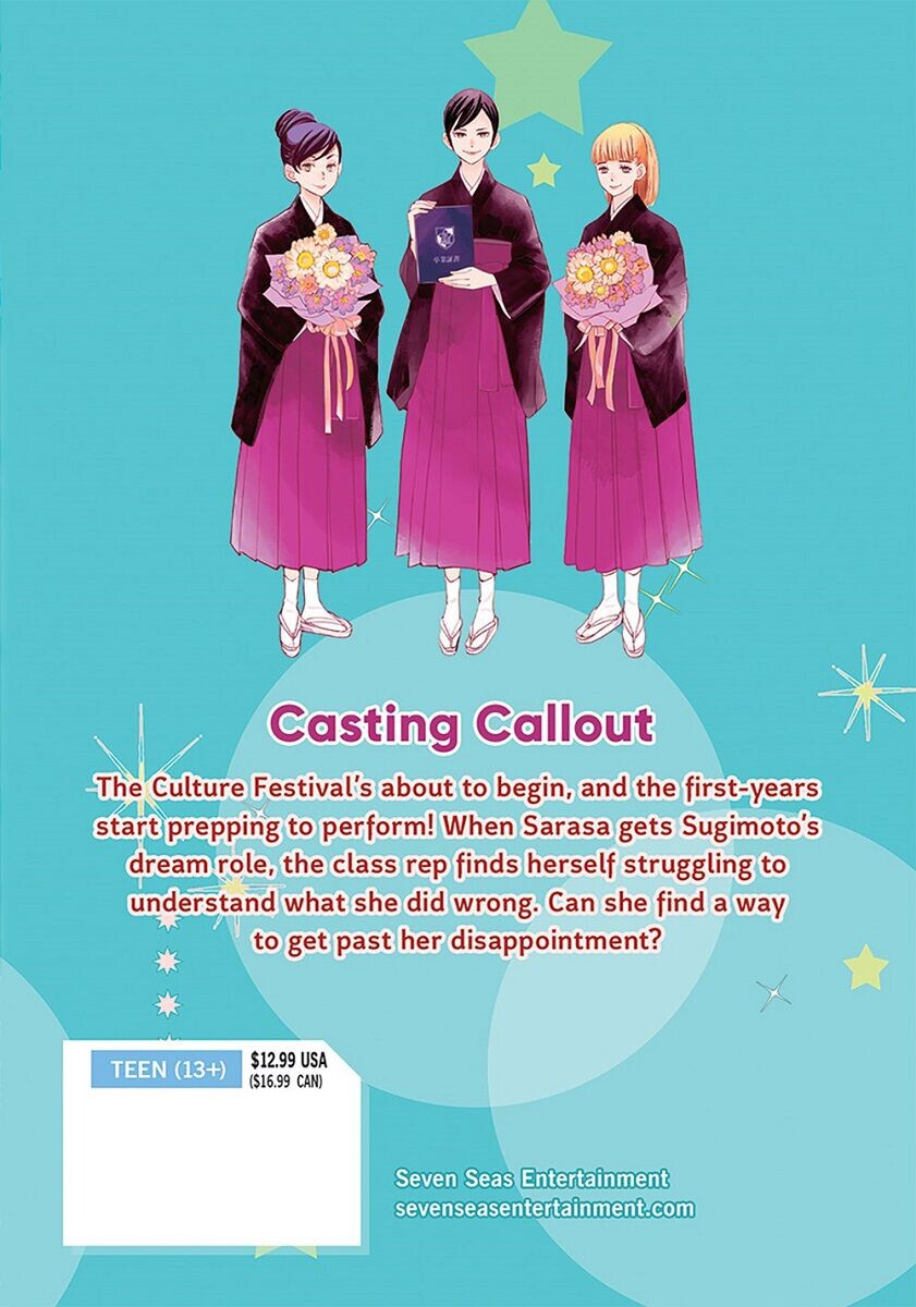 Фестиваль культуры вот-вот начнется, и первокурсники начинают готовиться к выступлению! Когда Сараса получает роль мечты Сугимото, староста класса изо всех сил пытается понять, что она сделала не так. Сможет ли она найти способ преодолеть свое разочарование?