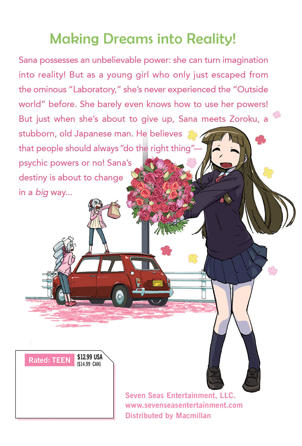 Сана обладает невероятной силой: она может превращать воображение в реальность! Но как молодая девушка, которая только что сбежала из зловещей «Лаборатории», она никогда раньше не сталкивалась с «Внешним миром». Она даже едва знает, как использовать свои силы! Но как раз когда она собирается сдаться, Сана встречает Зороку, упрямого старого японца. Он считает, что люди всегда должны «поступать правильно» — с экстрасенсорными способностями или без них! Судьба Саны вот-вот кардинально изменится...
