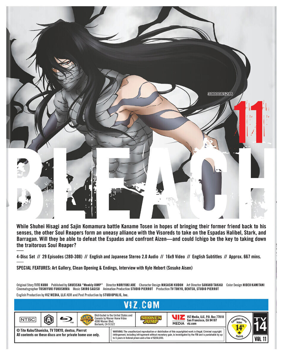 Bleach Set 11 содержит эпизоды 280-308 аниме, снятого Нориюки Абэ.