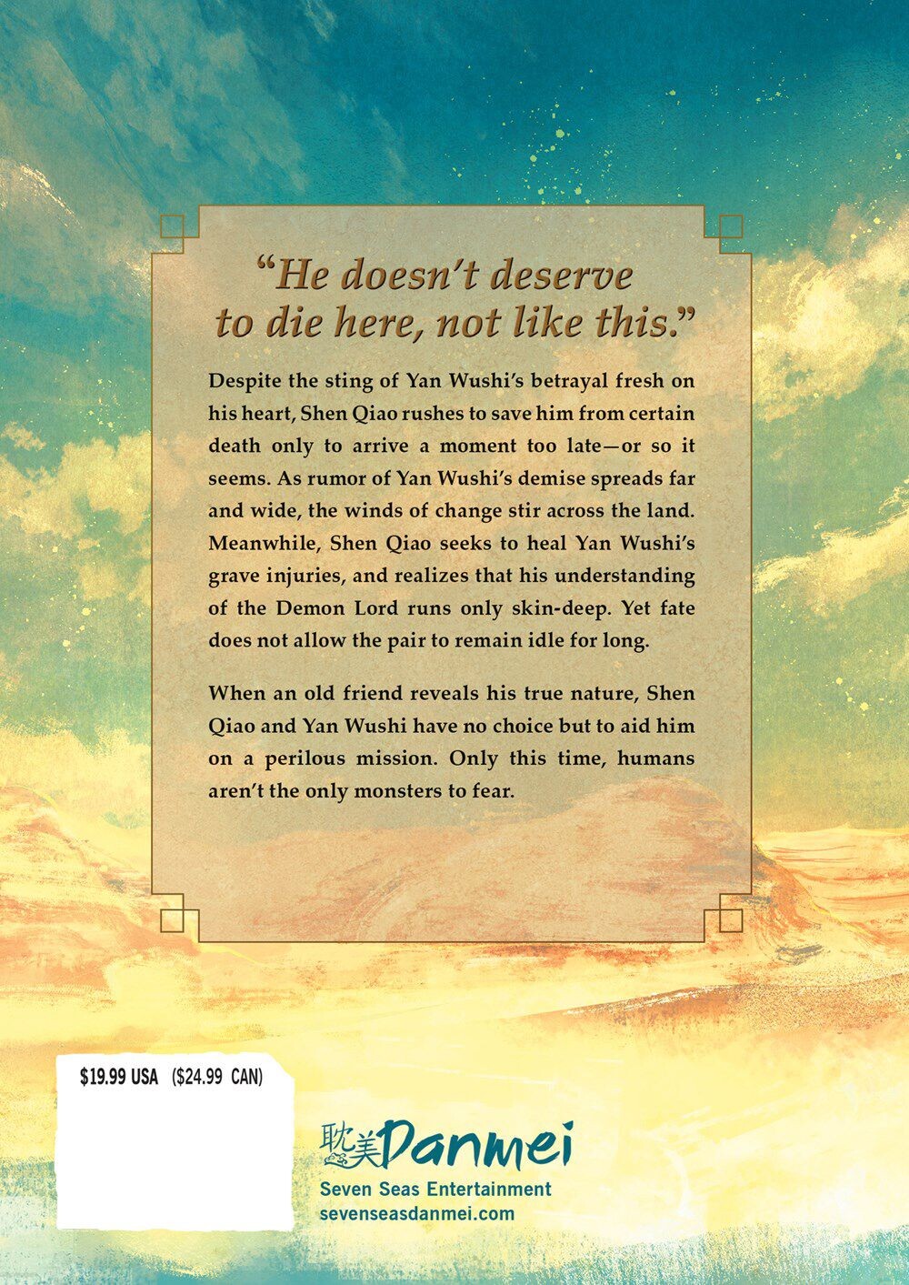 Несмотря на то, что укол предательства Янь Уши был свеж в его сердце, Шэнь Цяо спешит спасти его от неминуемой смерти, но прибывает на мгновение позже — или так кажется. Поскольку слух о кончине Янь Уши распространяется далеко и широко, ветры перемен проносятся по всей стране. Тем временем Шэнь Цяо пытается исцелить серьезные раны Янь Уши и понимает, что его понимание Повелителя демонов лежит только на поверхности. Но судьба не позволяет паре долго оставаться без дела.