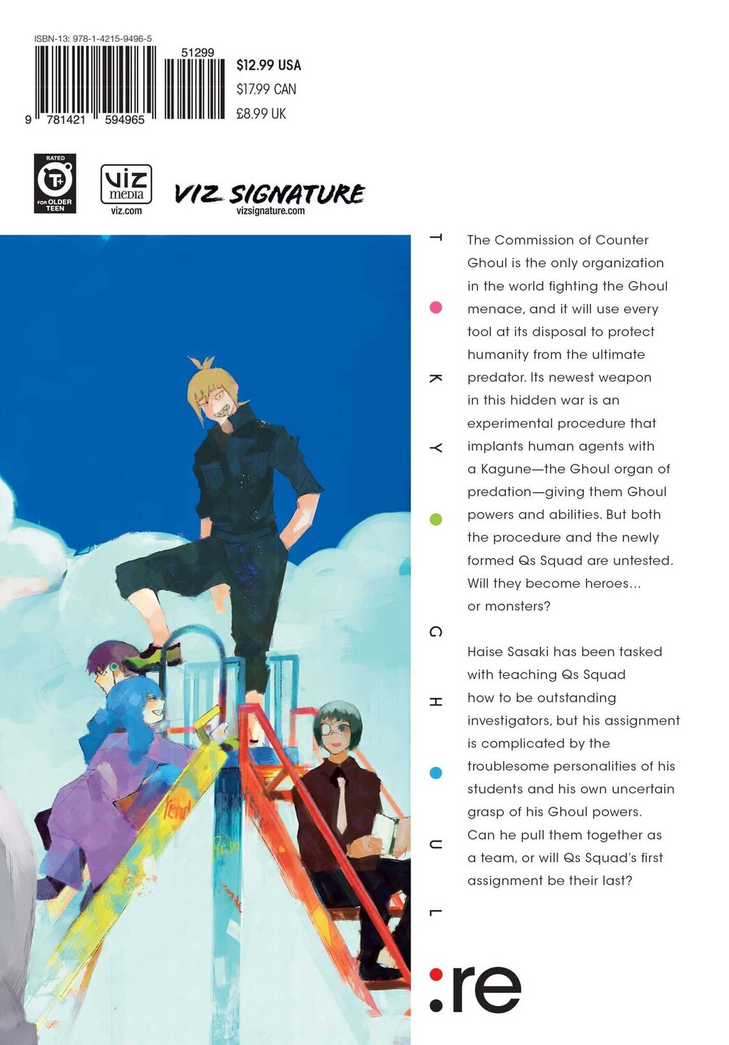 Комиссия по борьбе с гулями — единственная организация, борющаяся с угрозой гулей, и они будут использовать все имеющиеся в их распоряжении средства, чтобы защитить человечество от его главного хищника. Их новейшее оружие в этой скрытой войне — экспериментальная процедура, которая имплантирует следователям-людям Кагуне гуля, наделяя их силами и способностями гуля. Но и процедура, и недавно сформированный отряд Qs не проверены. Станут ли они героями… или монстрами?!