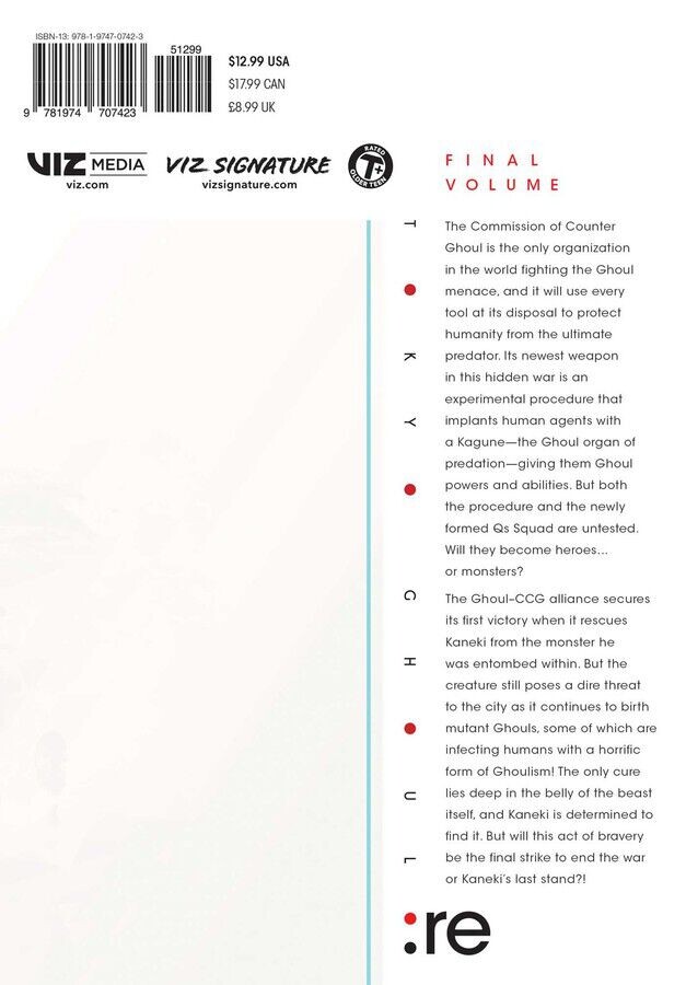 Альянс Ghoul-CCG одерживает свою первую победу, когда спасает Канеки от монстра, в котором он был заточен. Но существо по-прежнему представляет страшную угрозу для города, поскольку оно продолжает рождать мутантов-гулей, некоторые из которых заражают людей ужасной формой гулизма! Единственное лекарство лежит глубоко в животе самого зверя, и Канеки полон решимости найти его. Но станет ли этот акт храбрости последним ударом, который положит конец войне последнего боя Канеки?