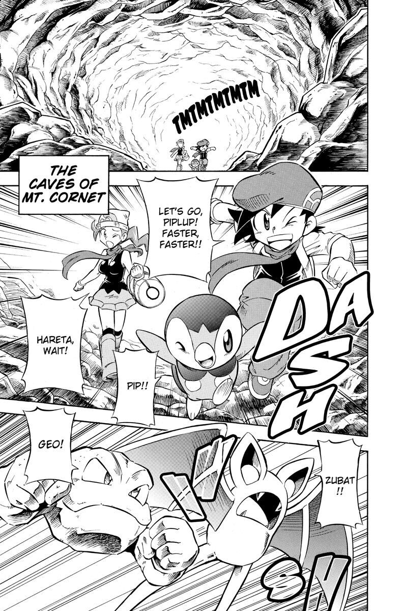 По мере того, как они путешествуют по земле Синно, Харета и его партнер Пиплуп становятся сильнее с каждым днем, разрушая планы Команды Галактики и ввязываясь во множество битв покемонов по пути! В Городе Селестик они находят первую важную подсказку о местонахождении Диалги, но обнаруживают, что Сайрус, босс Команды Галактики, опередил их. После битвы с Сайрусом Харета еще больше полон решимости улучшить свои навыки тренера. К счастью, он встречает именно того человека, который поможет ему в этом: лидера спортзала города Каналаве Байрона, одного из самых суровых учителей во всем Синно. Смогут ли Харета и Пиплуп пройти испытание Байрона в Крепости Стали?